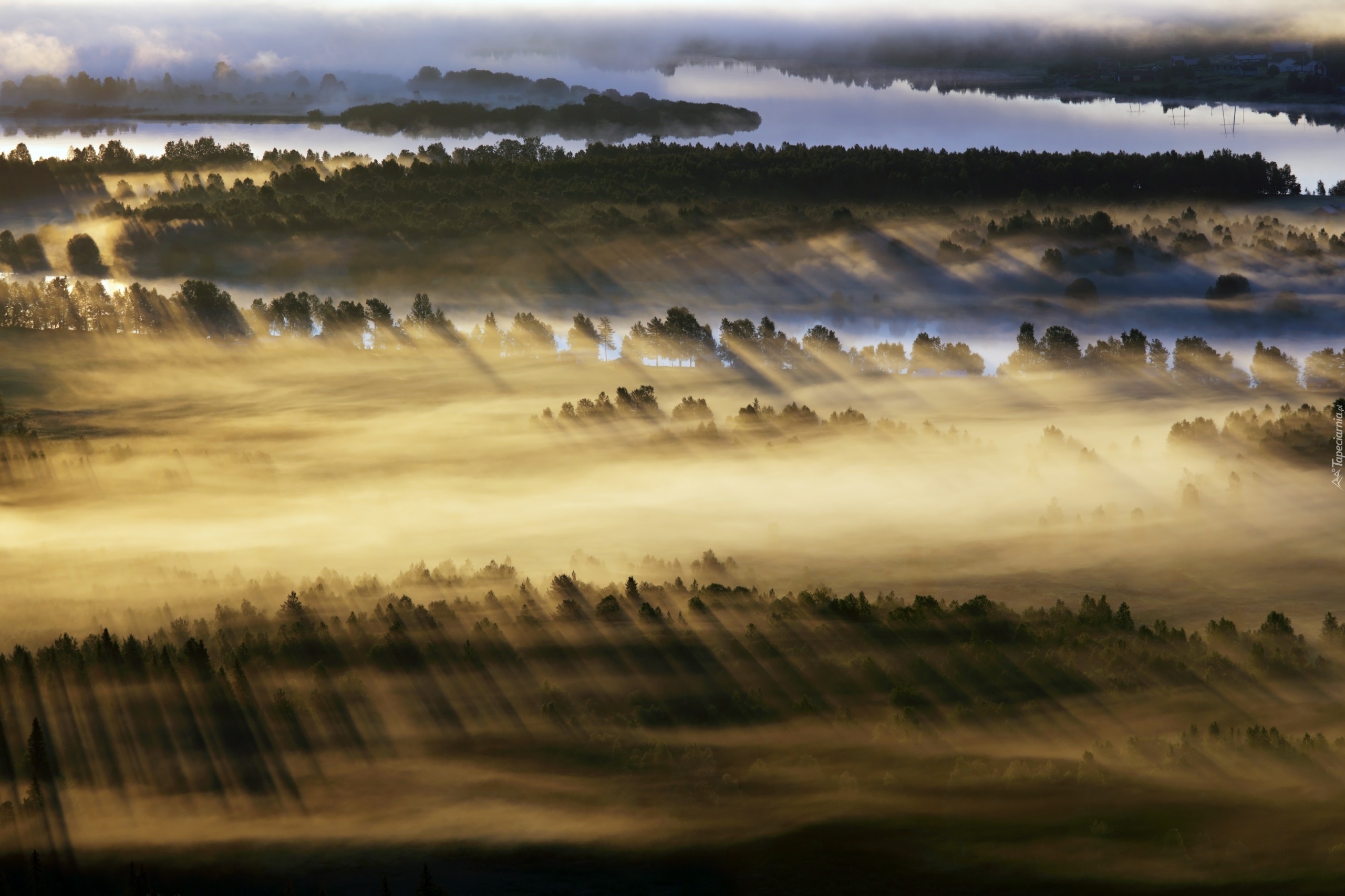 Edytor tapety: Krajobraz, Mgła, Promienie, Słońca