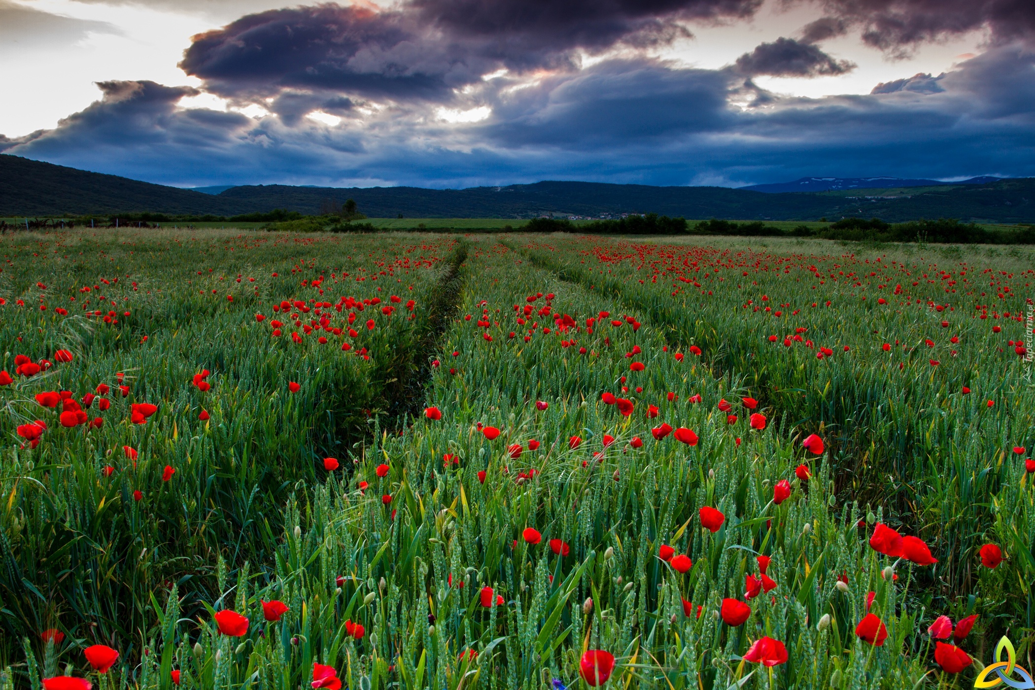 Edytor tapety: Pole, Zachmurzone, Niebo, Zboże, Polne, Maki