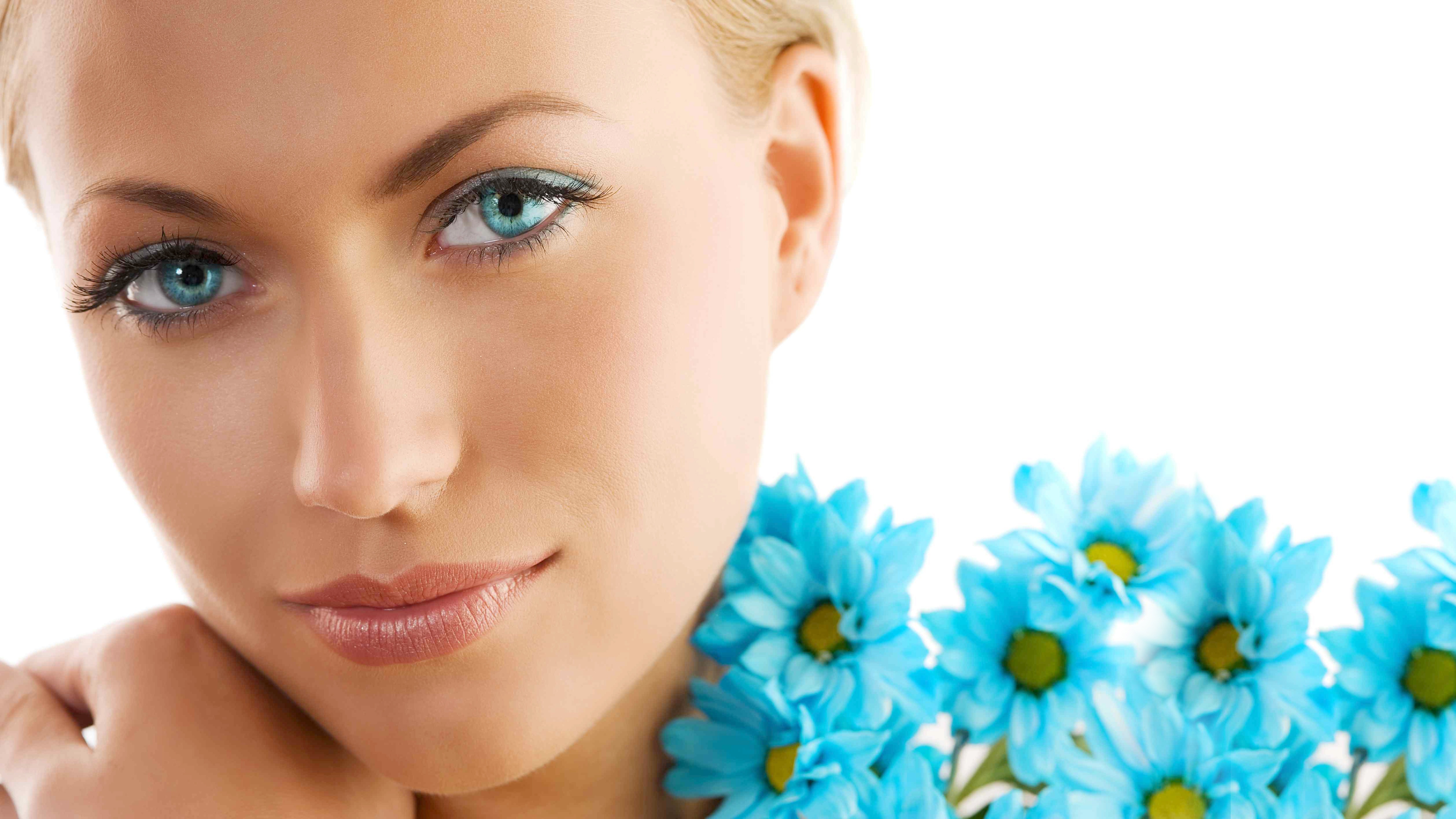 Edytor tapety: Blondwłosa, Kobieta, Makijaż, Kwiaty