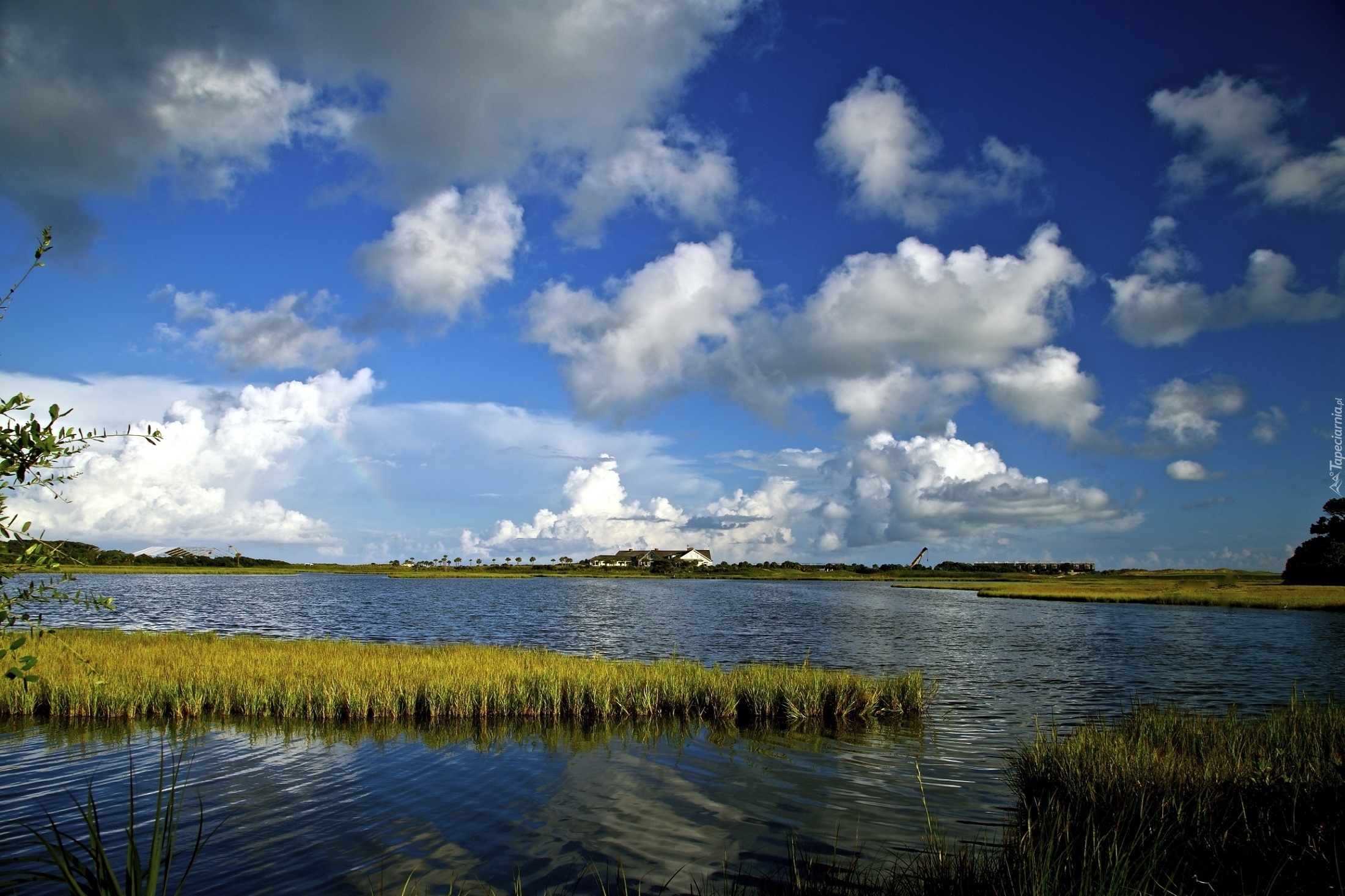 Edytor tapety: Jezioro, Niebo, Zarośla