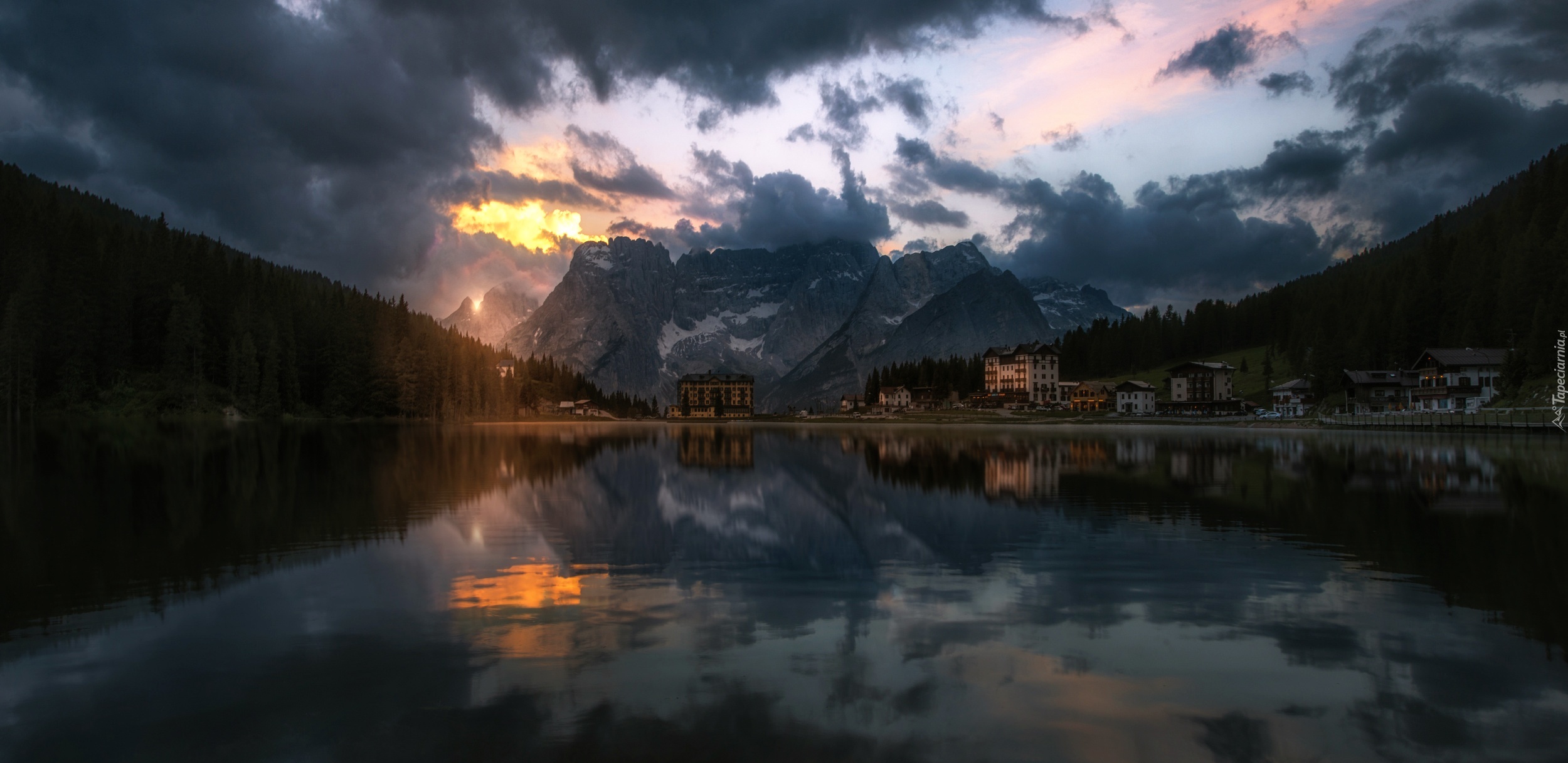 Edytor tapety: Chmury, Jezioro, Odbicie, Góry