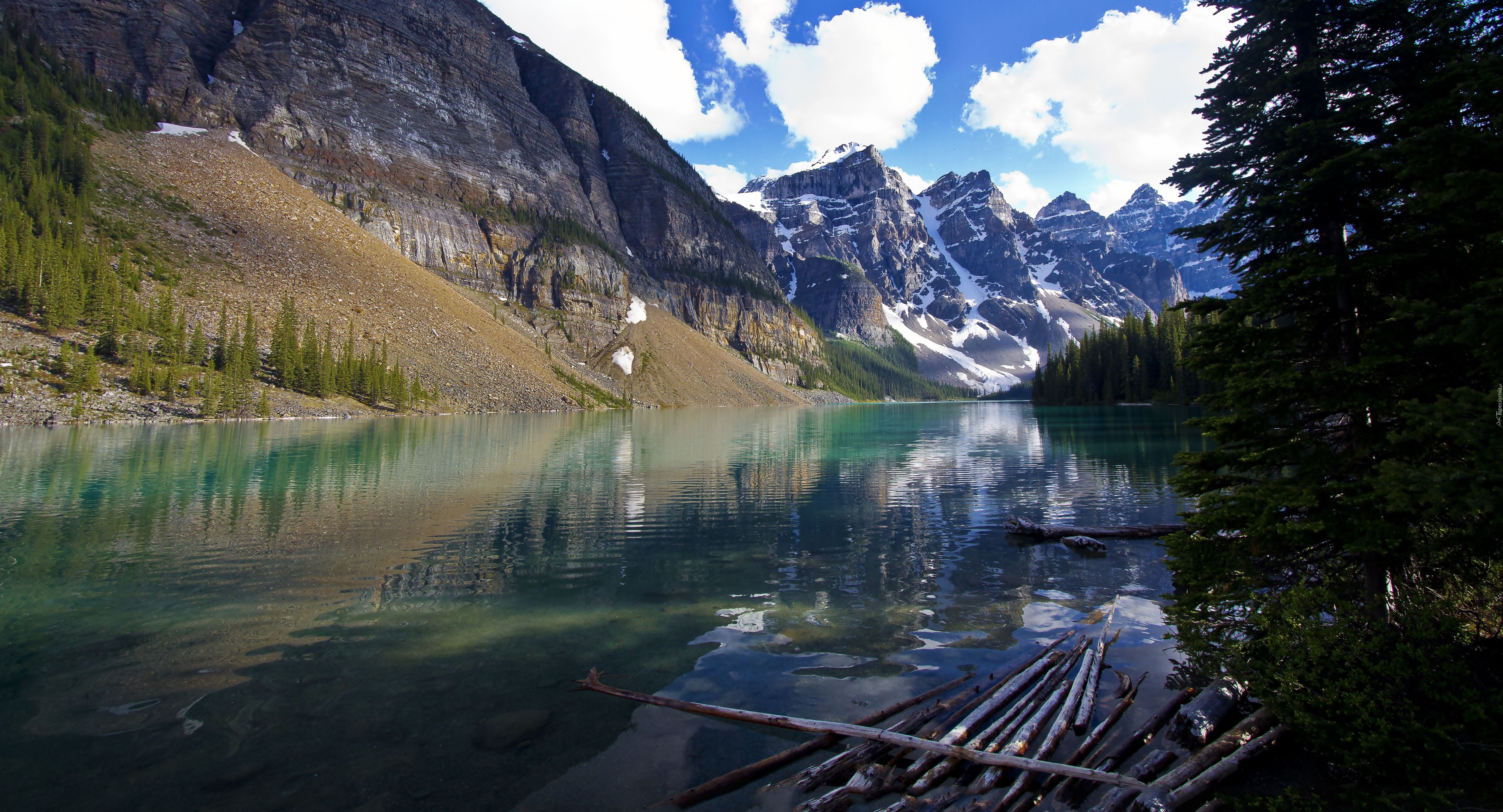 Edytor tapety: Góry, Jezioro, Chmury, Drzewa, Niebo
