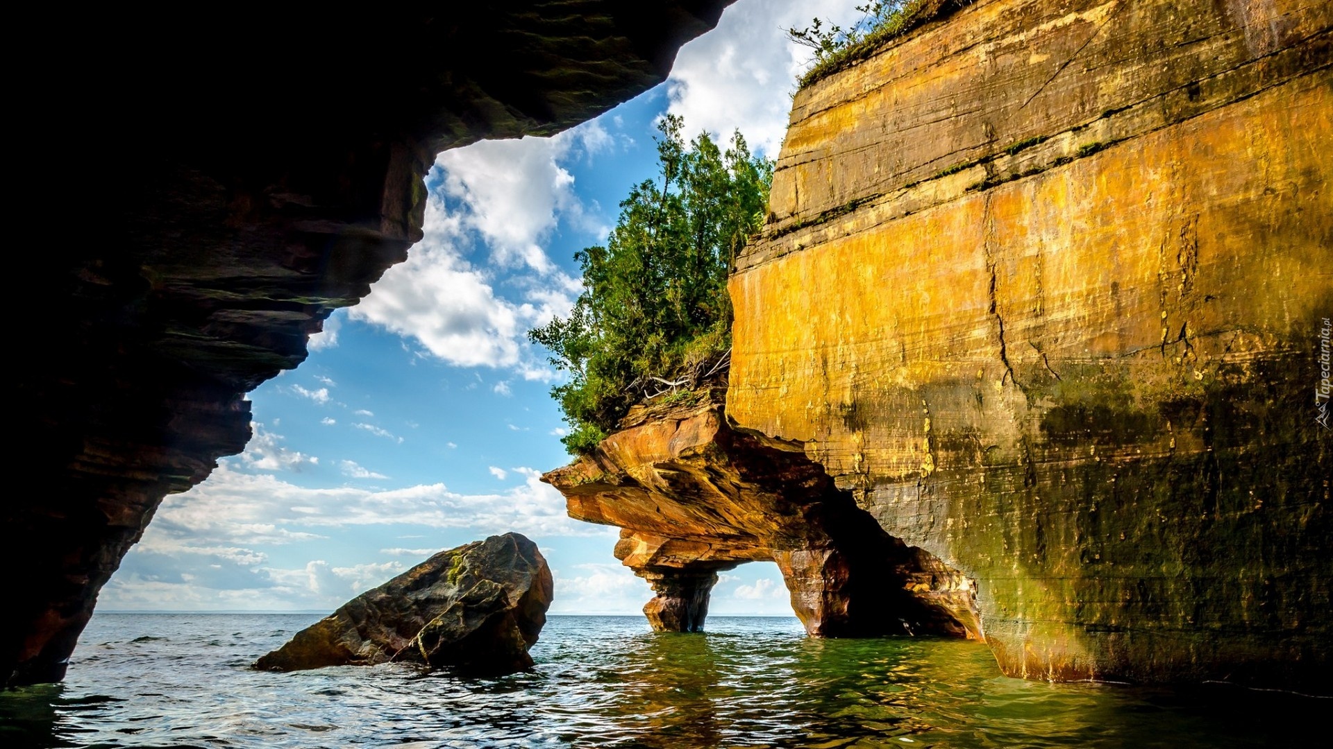 Edytor tapety: Morze, Klif, Skały, Drzewa