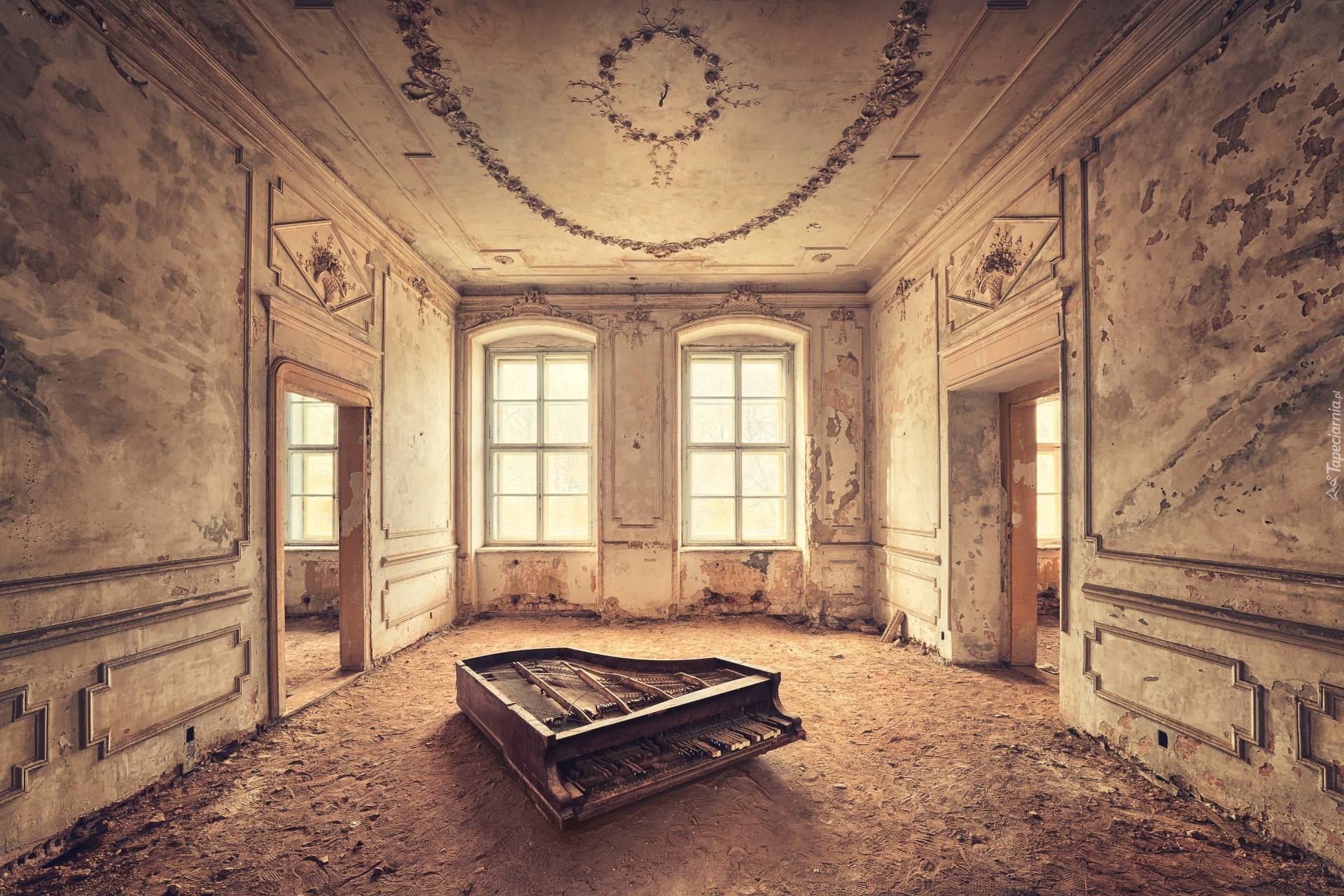 Edytor tapety: Zaniedbane, Pomieszczenie, Zniszczony, Fortepian, Okna