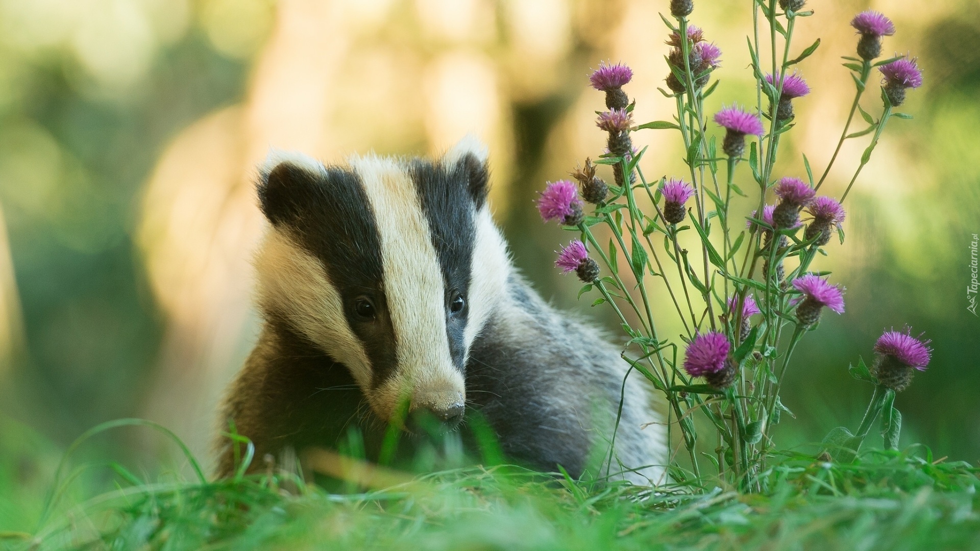 Edytor tapety: Borsuk, Trawa, Kwiaty