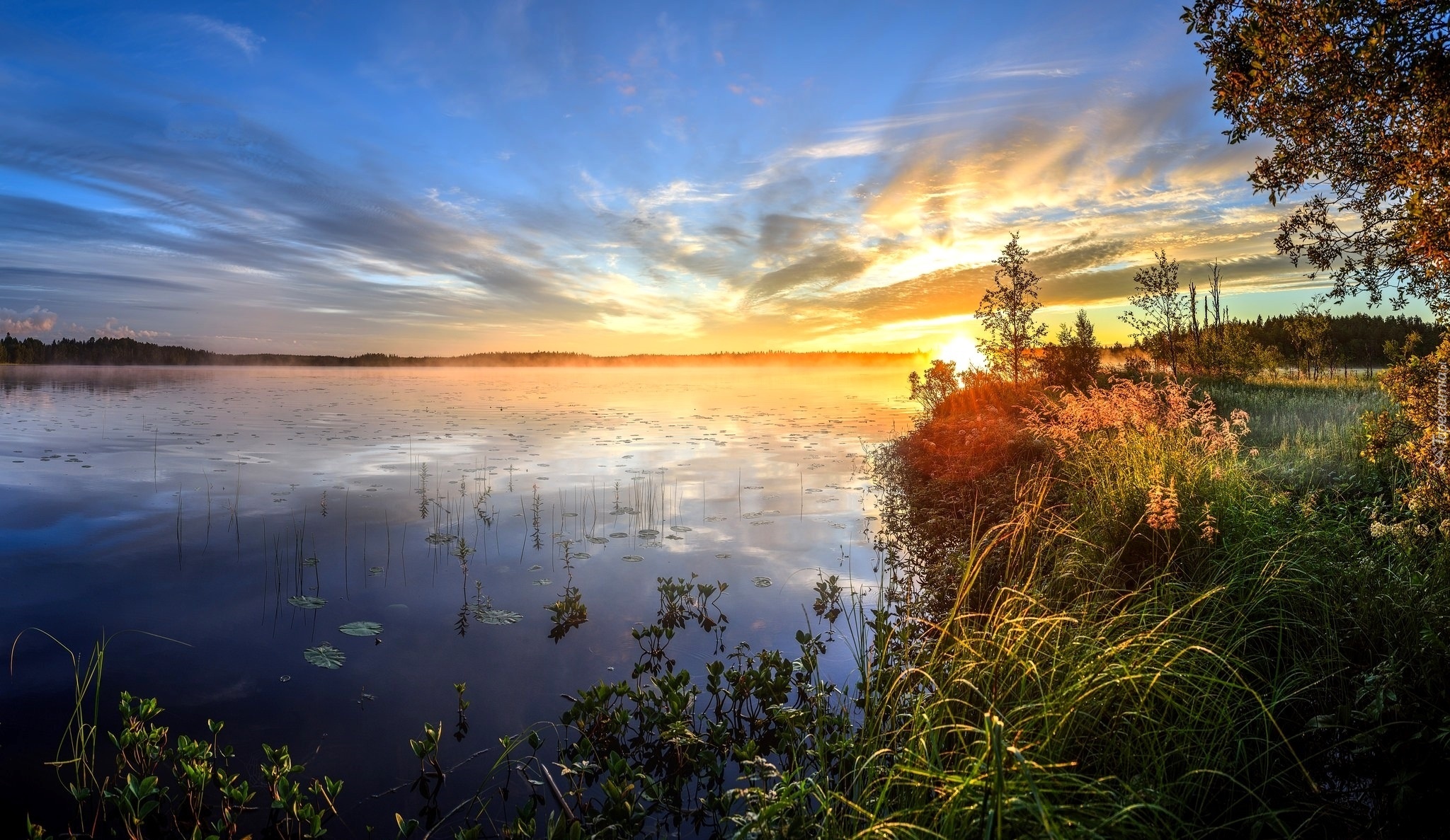 Edytor tapety: Zachód Słońca, Drzewo, Jezioro