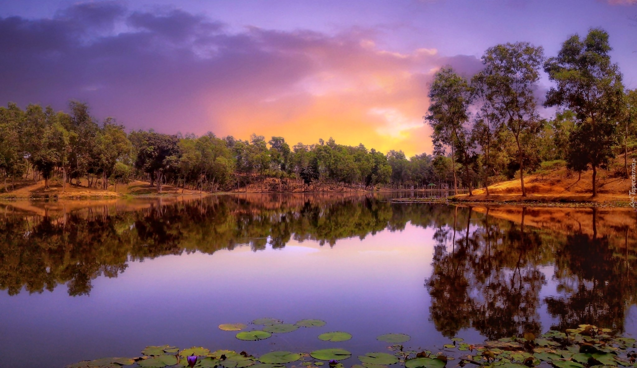 Edytor tapety: Rzeka, Drzewa, Odbicie, Niebo