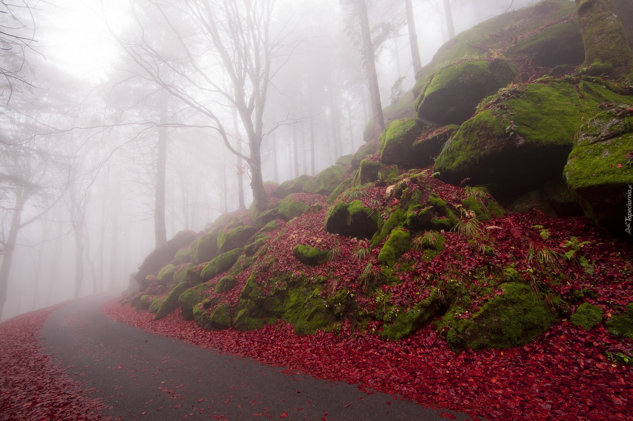 Edytor tapety: Czerwone, Liście, Ulica