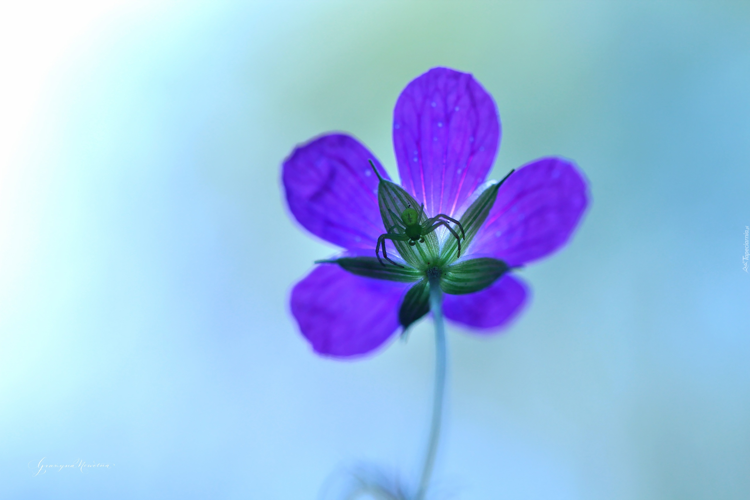 Edytor tapety: Bodziszek, Fioletowy, Kwiat, Pająk