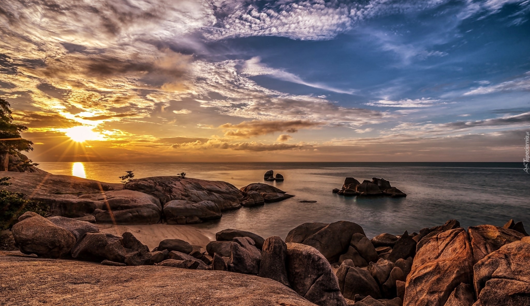 Edytor tapety: Morze, Skały, Kamienie, Niebo, Zachód, Słońca