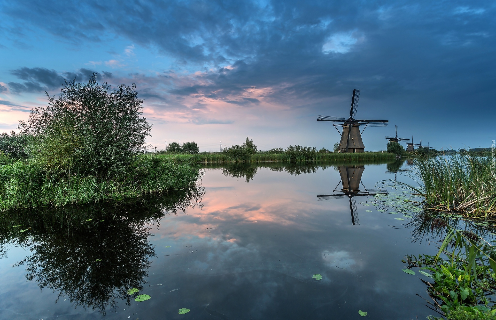 Edytor tapety: Wiatrak, Kanał, Chmury