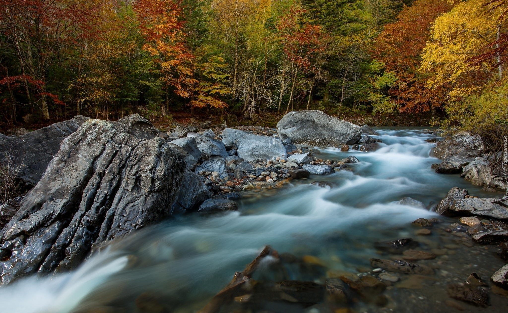 Edytor tapety: Las, Kamienie, Rzeka