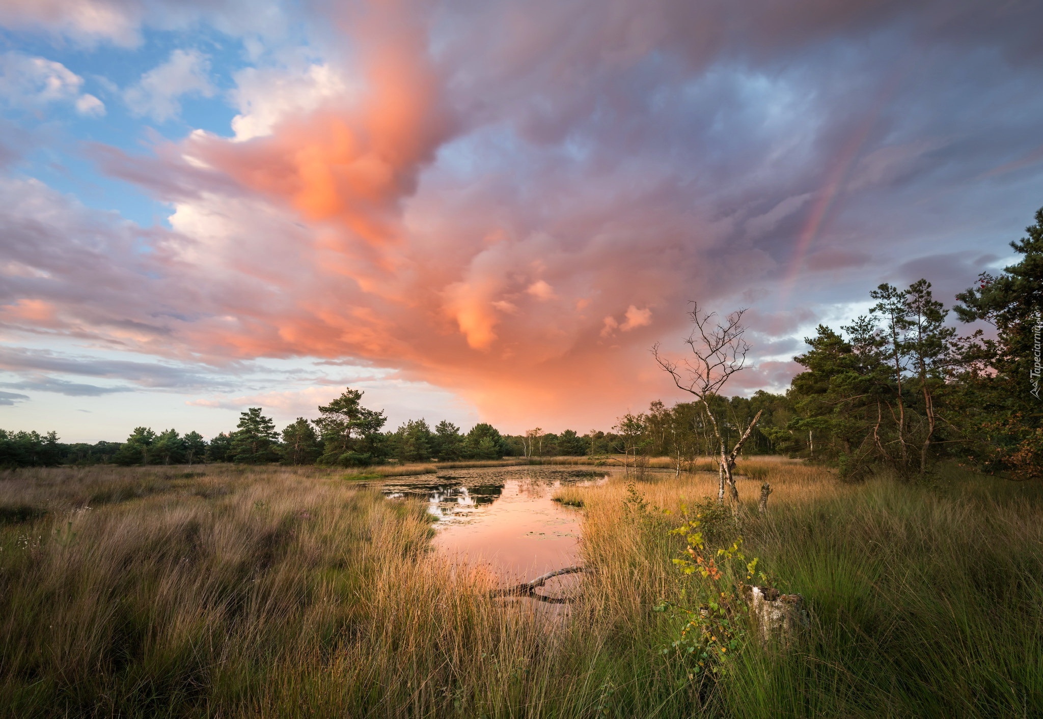 Edytor tapety: Jezioro, Zarośla, Drzewa, Niebo