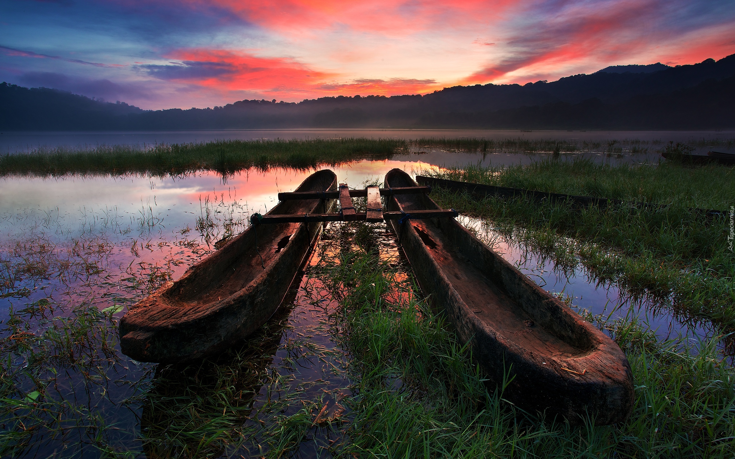 Edytor tapety: Jezioro, Kajaki, Niebo, Zachód słońca