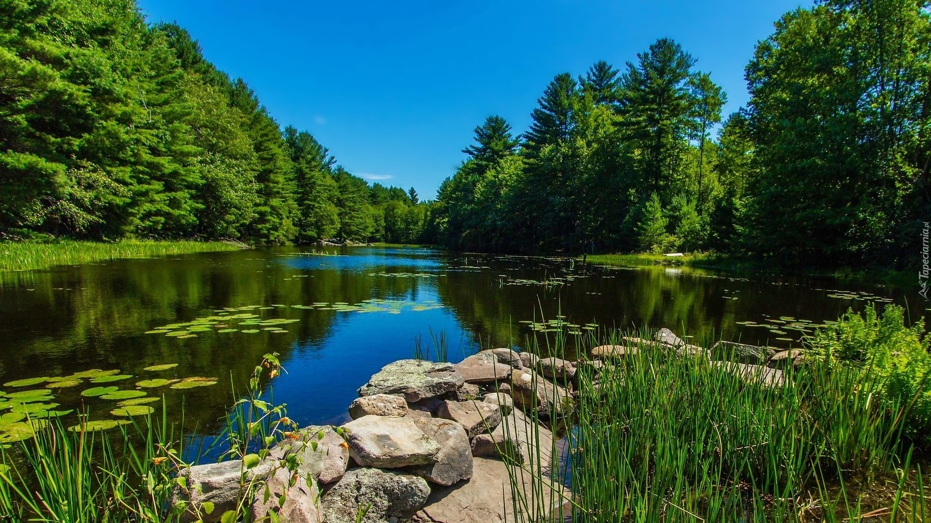 Edytor tapety: Park, Staw, Kamienie, Drzewa