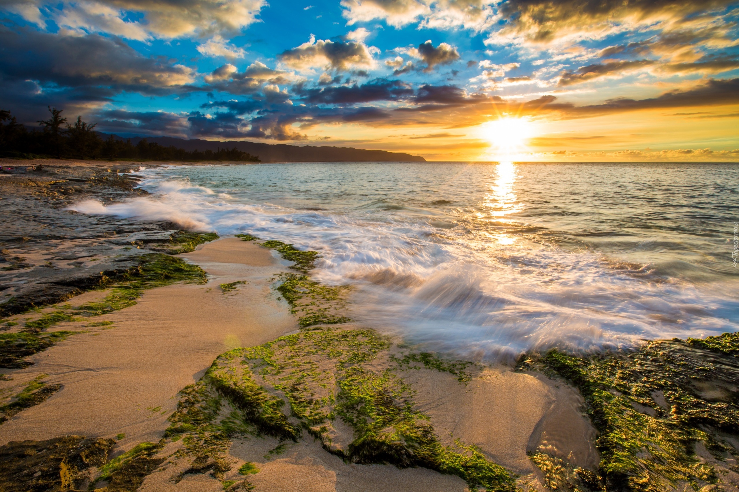 Edytor tapety: Morze, Zachód słońca, Chmury, Niebo