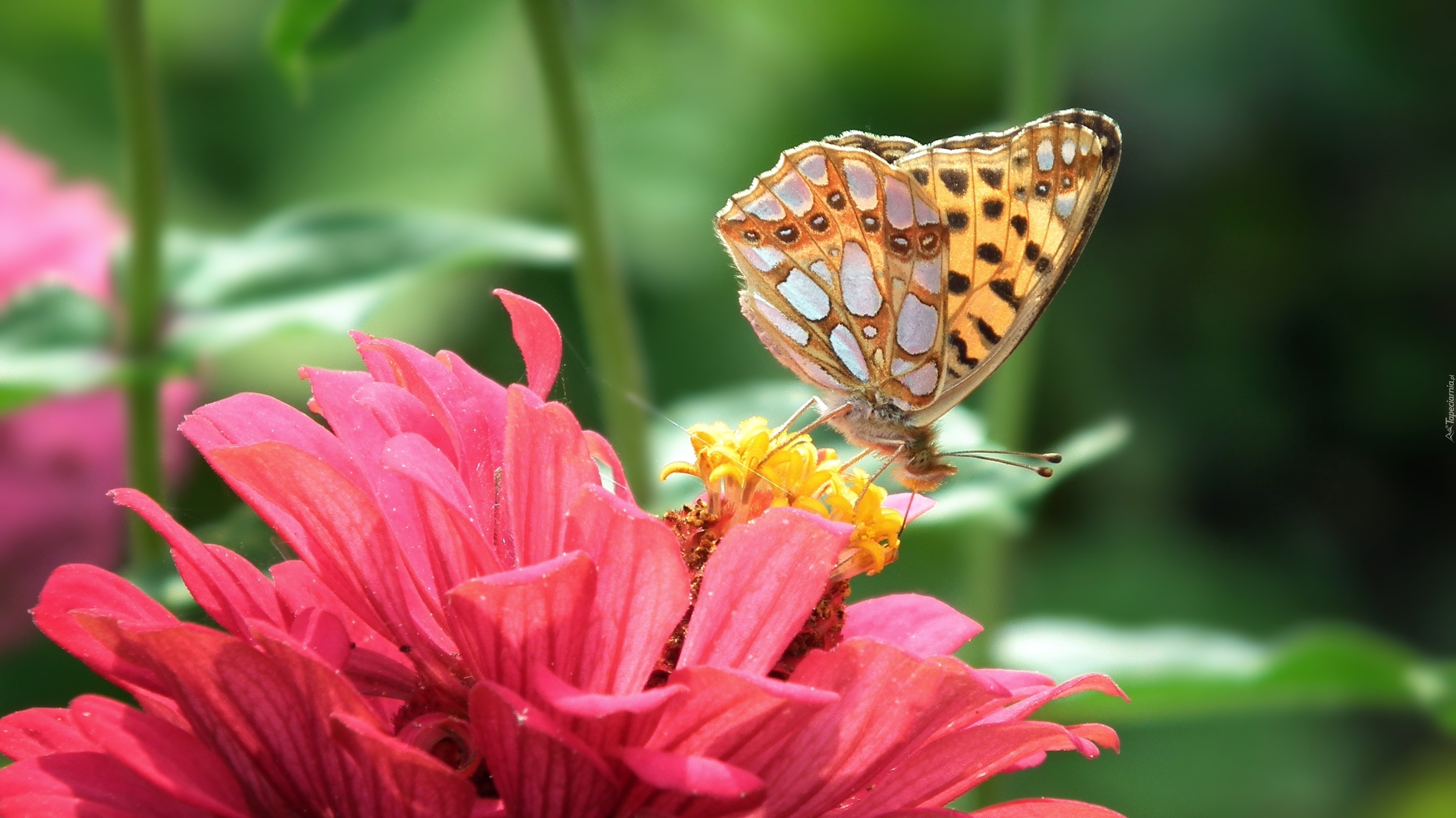 Edytor tapety: Różowy, Kwiat, Cynia, Motyl, Dostojka, Latonia