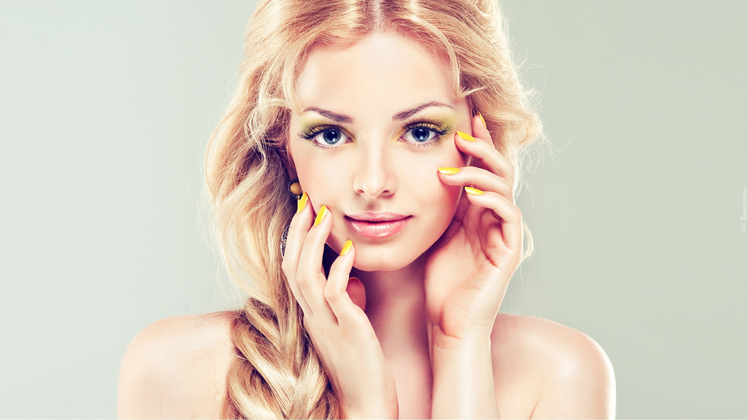 Edytor tapety: Blondwłosa, Kobieta, Makijaż, Manicure, Kolczyk