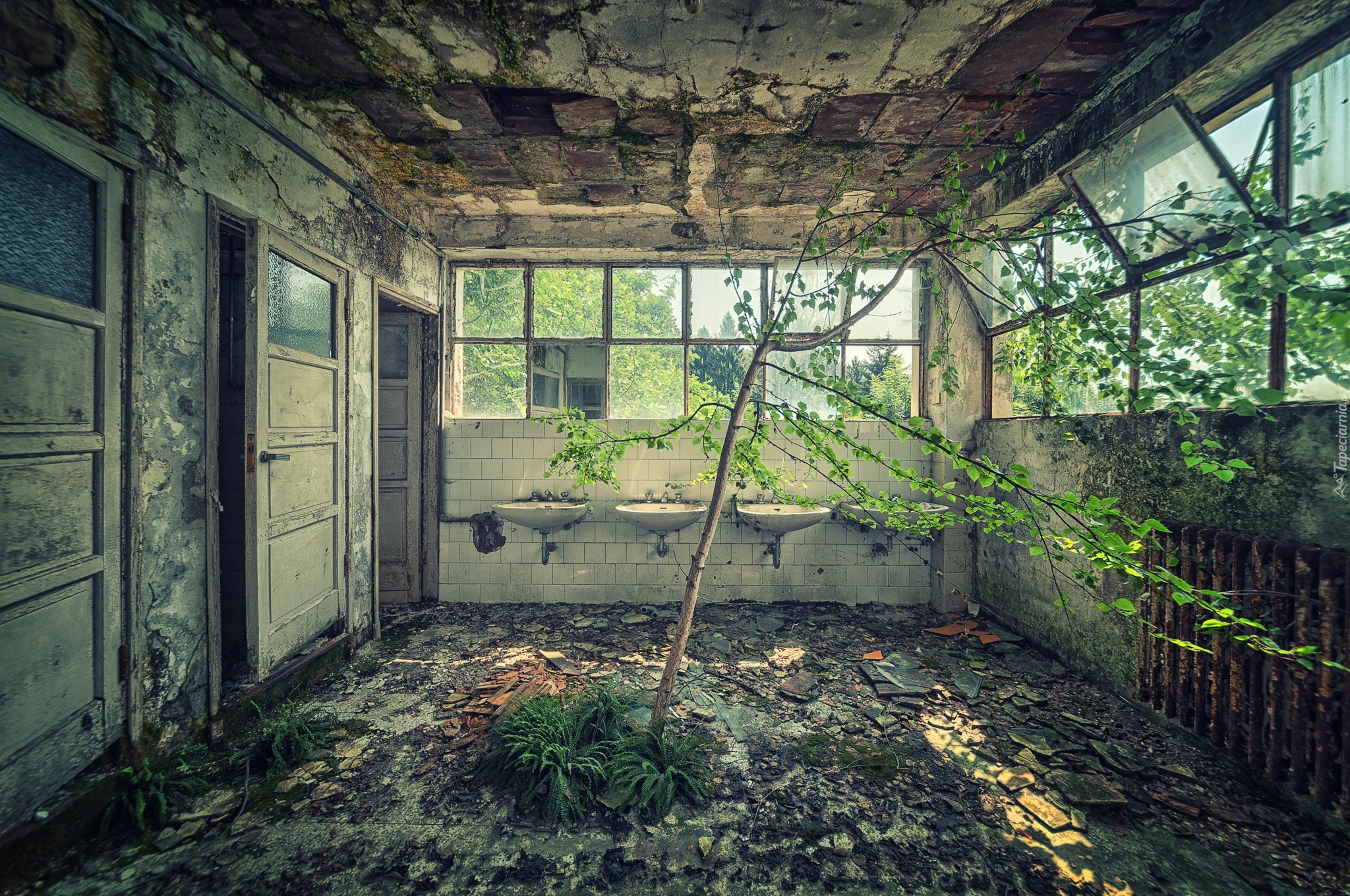 Edytor tapety: Umywalki, Drzewo, Drzwi, Ruina
