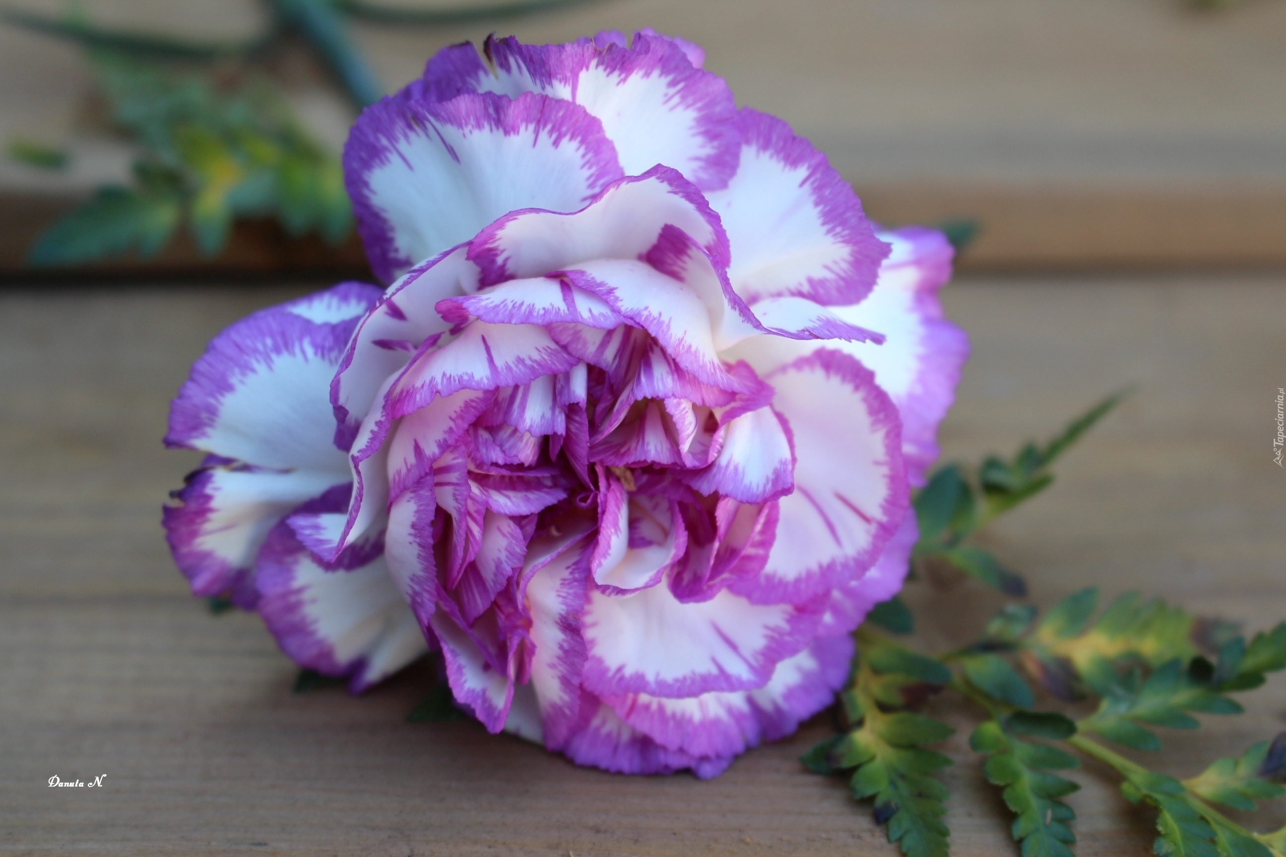 Edytor tapety: Kwiat, Gożdzik, Dwukolorowy, Deski, Liście