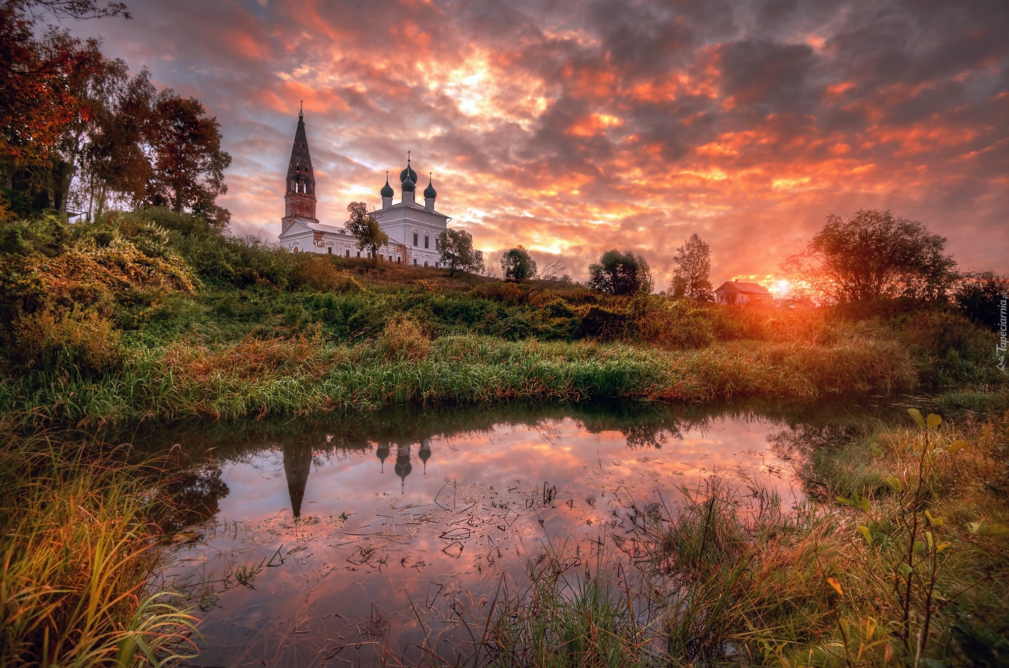 Edytor tapety: Cerkiew, Rzeka, Zachód Słońca