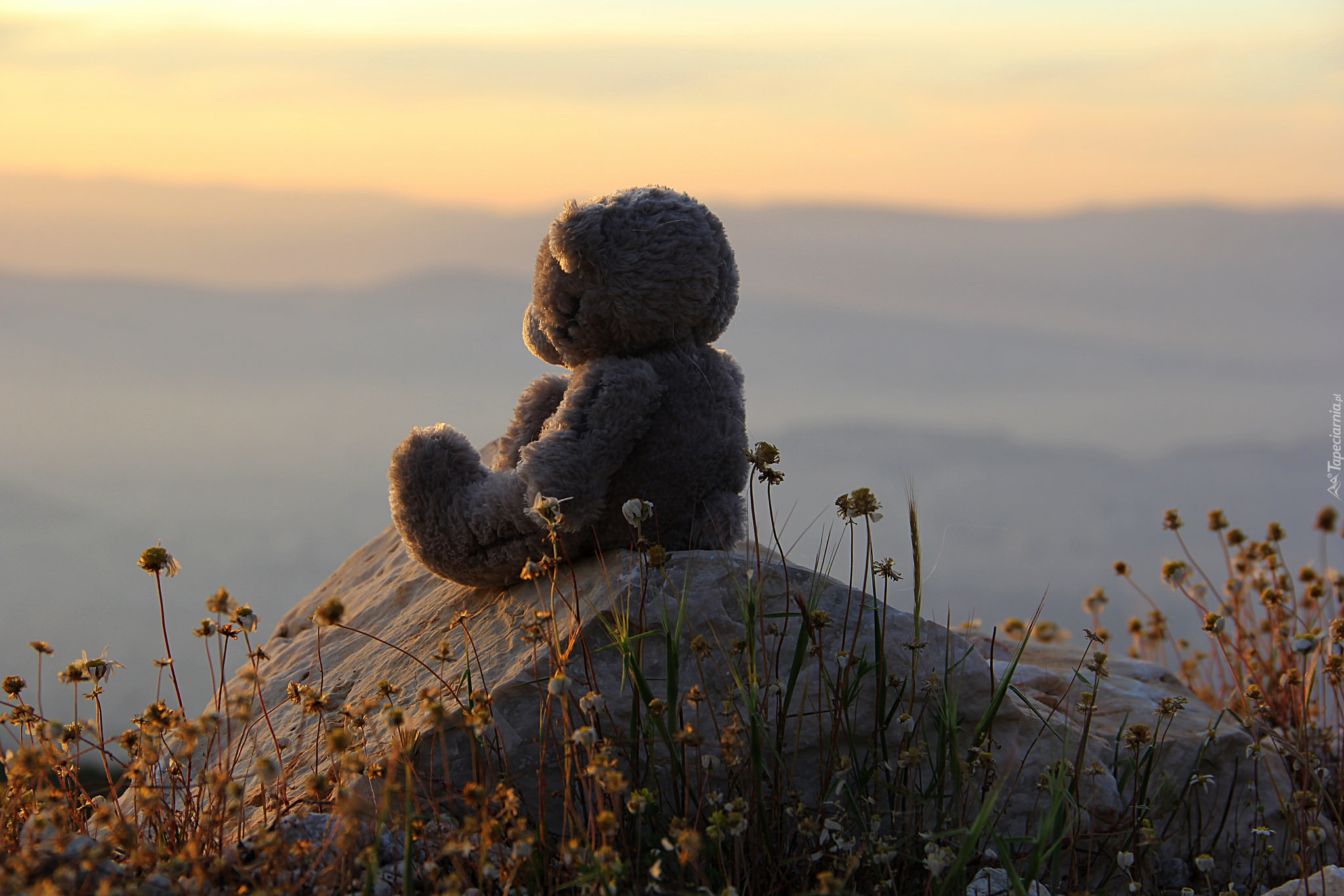 Edytor tapety: Miś, Kamień, Kwiaty