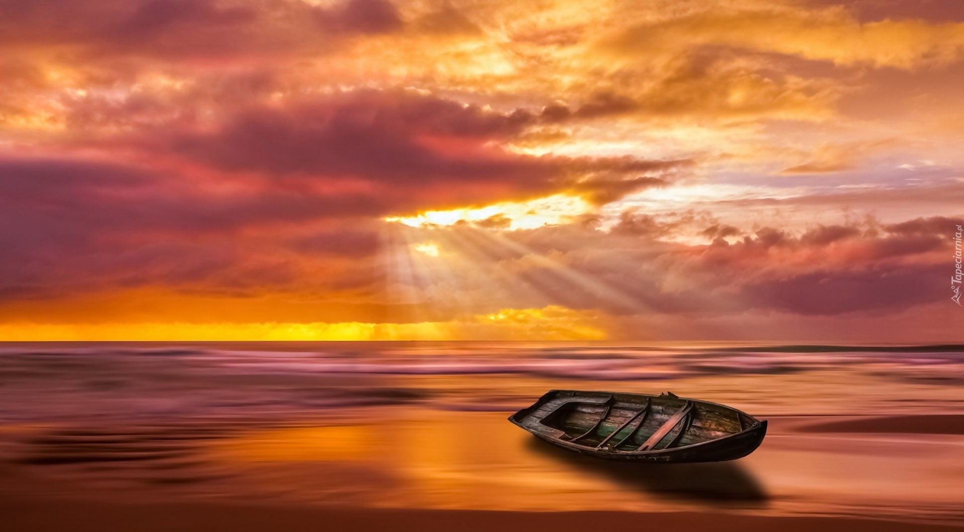Edytor tapety: Morze, Łódka, Niebo, Zachód, Słońca