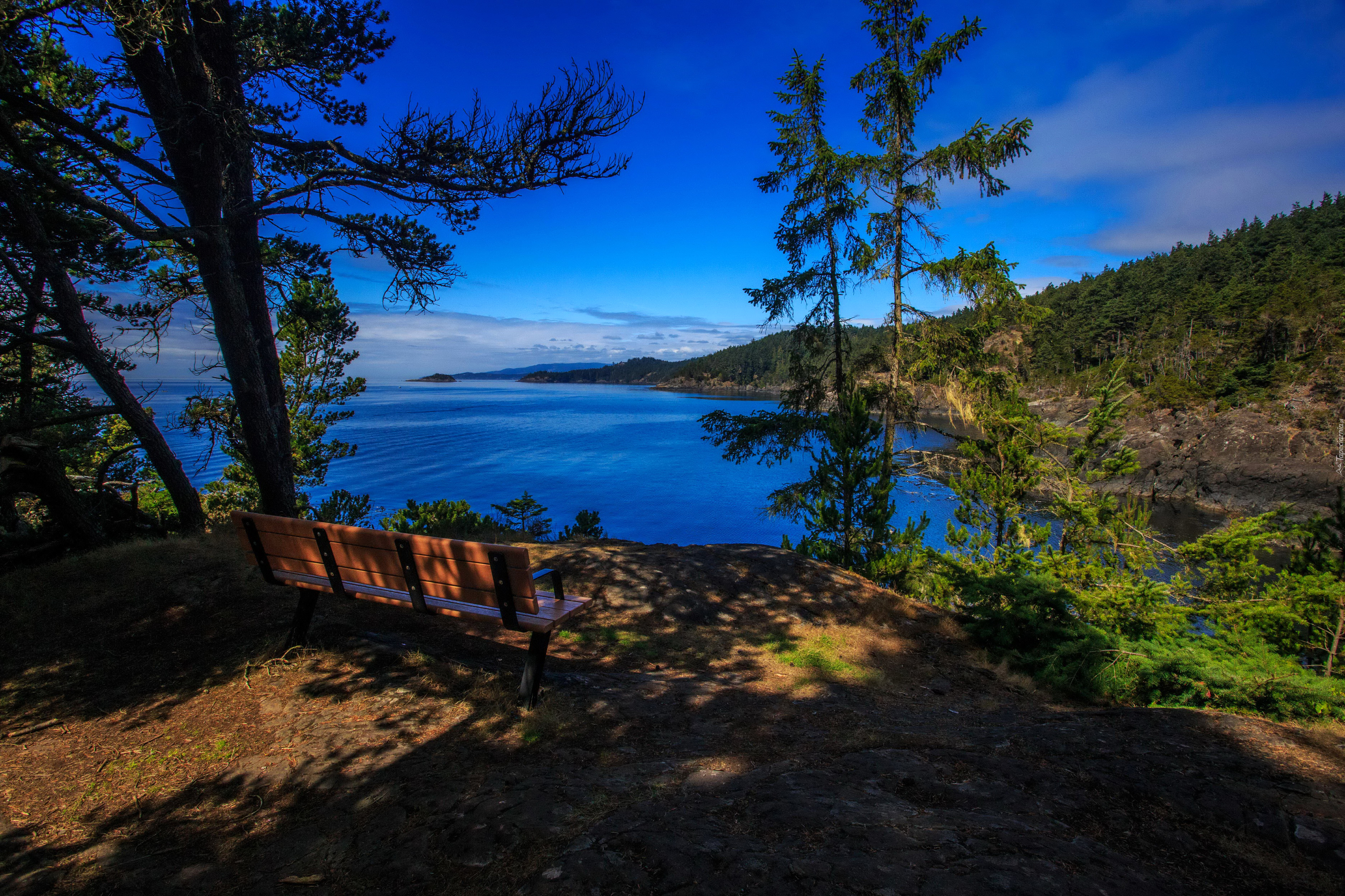 Edytor tapety: Jezioro, Ławka, Park, Drzewa, Kanada
