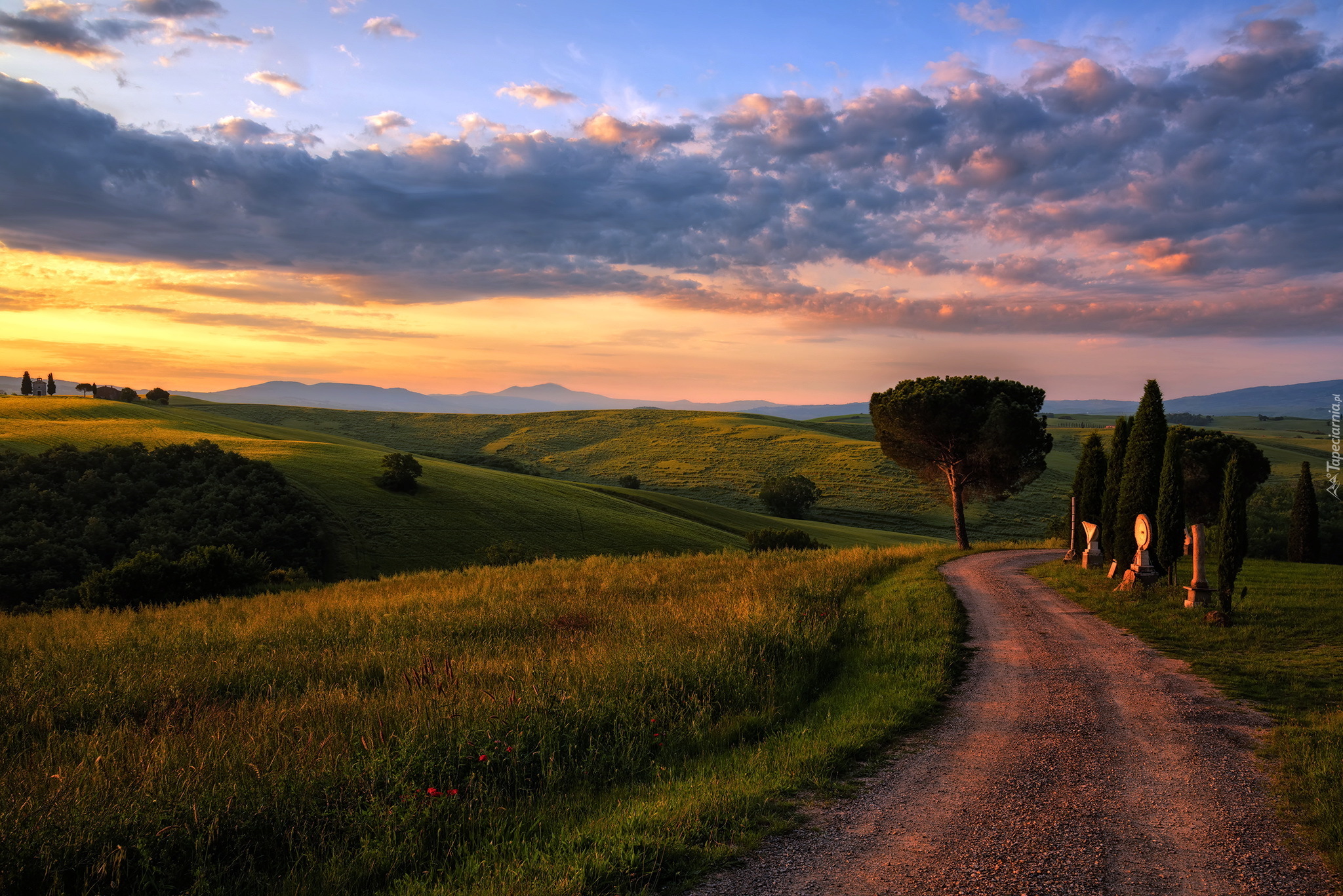 Edytor tapety: Droga, Chmury, Drzewa, Trawa