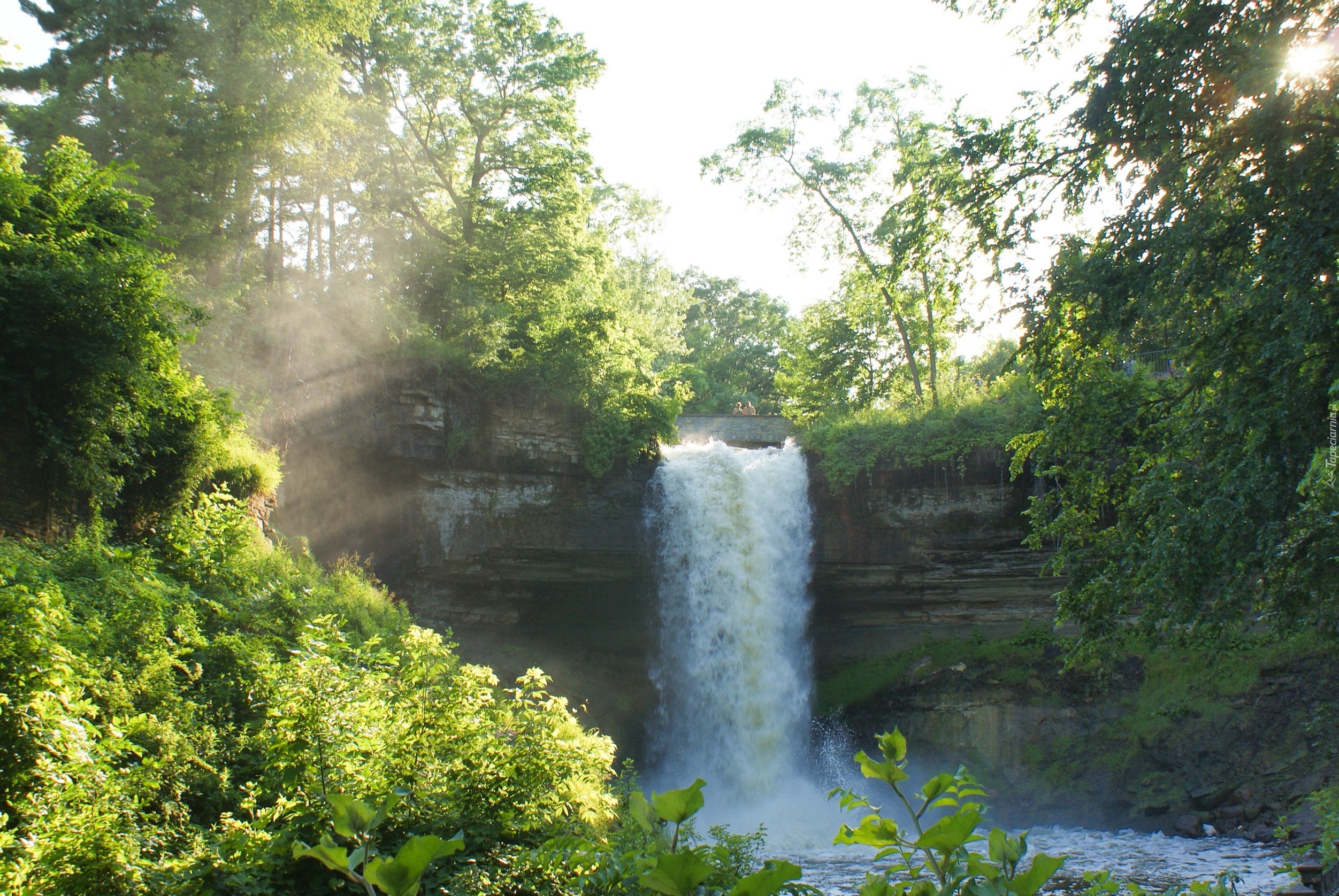 Edytor tapety: Wodospad, Drzewa, Promienie, Słońca