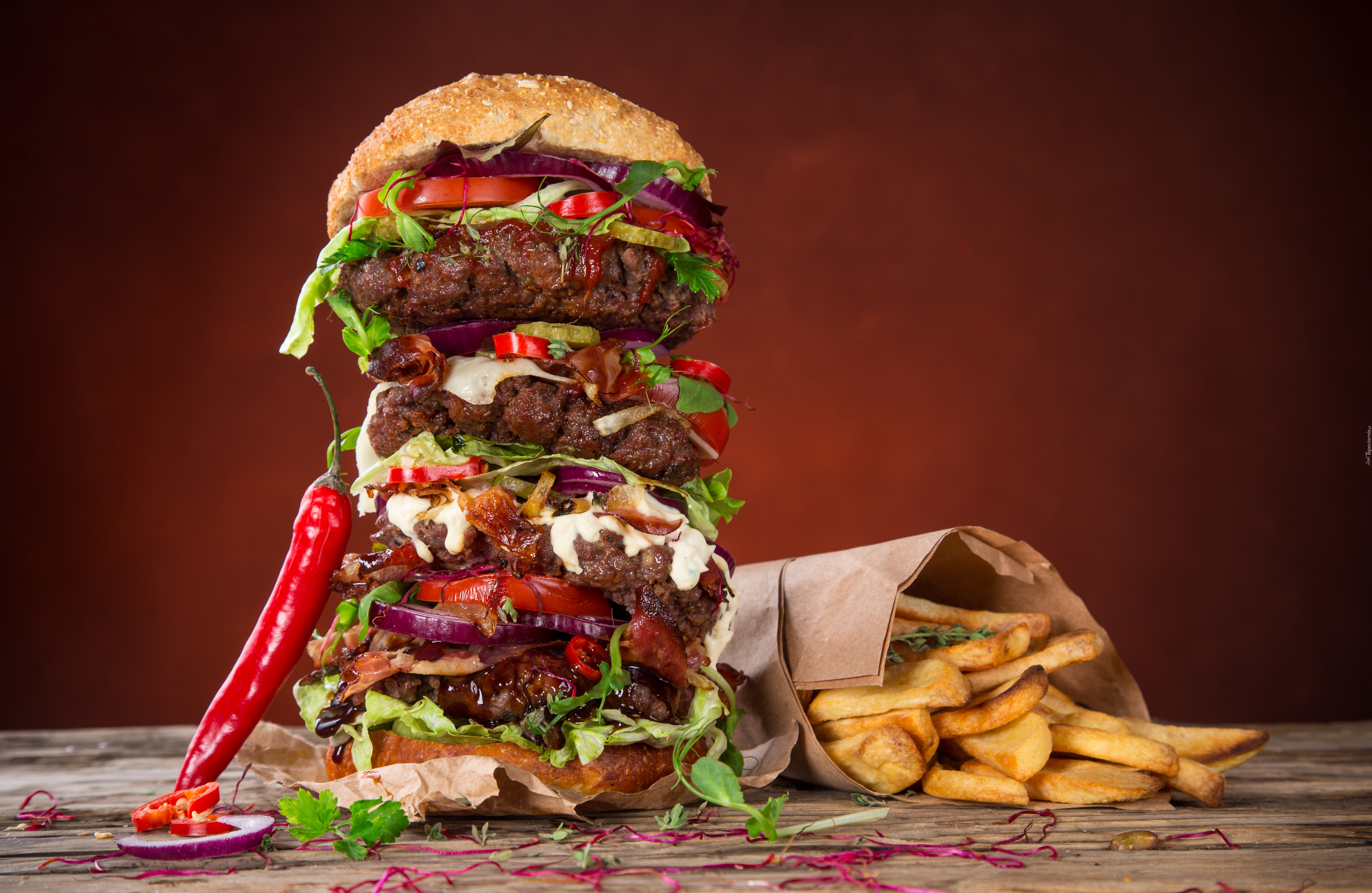Edytor tapety: Hamburger, Frytki