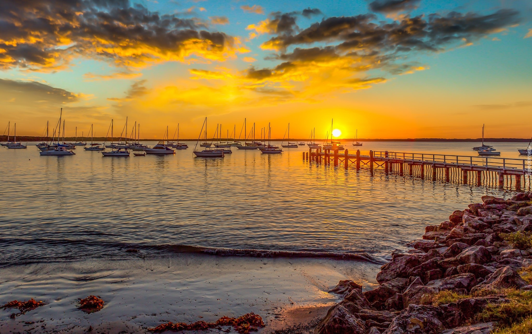 Edytor tapety: Morze, Kamienie, Zachód, Słońca, Statki, Pomost