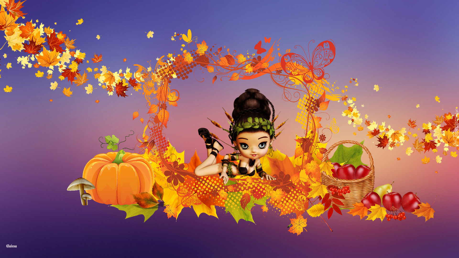 Edytor tapety: Jesień, Liście, Dynia, Koszyk, Laleczka, Grafika
