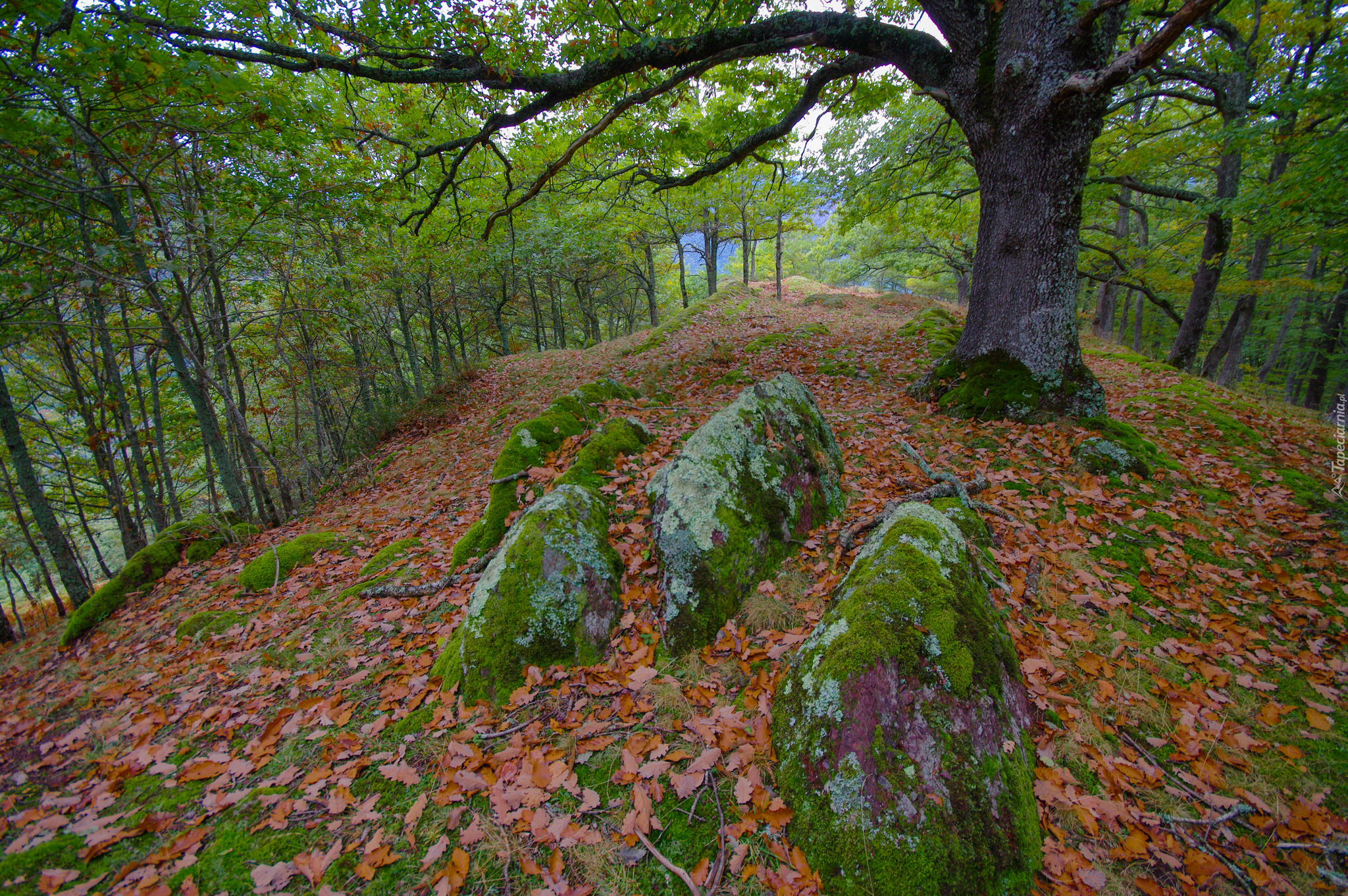 Edytor tapety: Omszałe, Kamienie, Las, Jesień