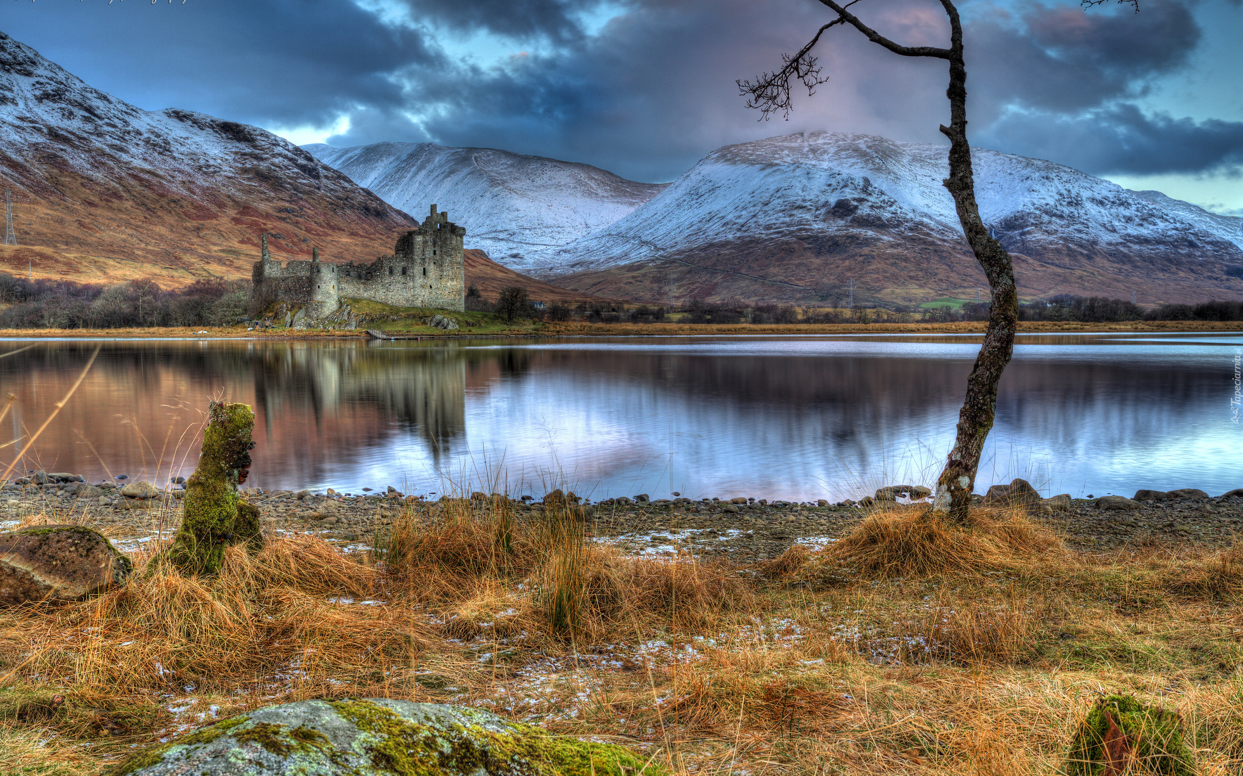 Edytor tapety: Szkocja, Zamek, Jezioro, Góry