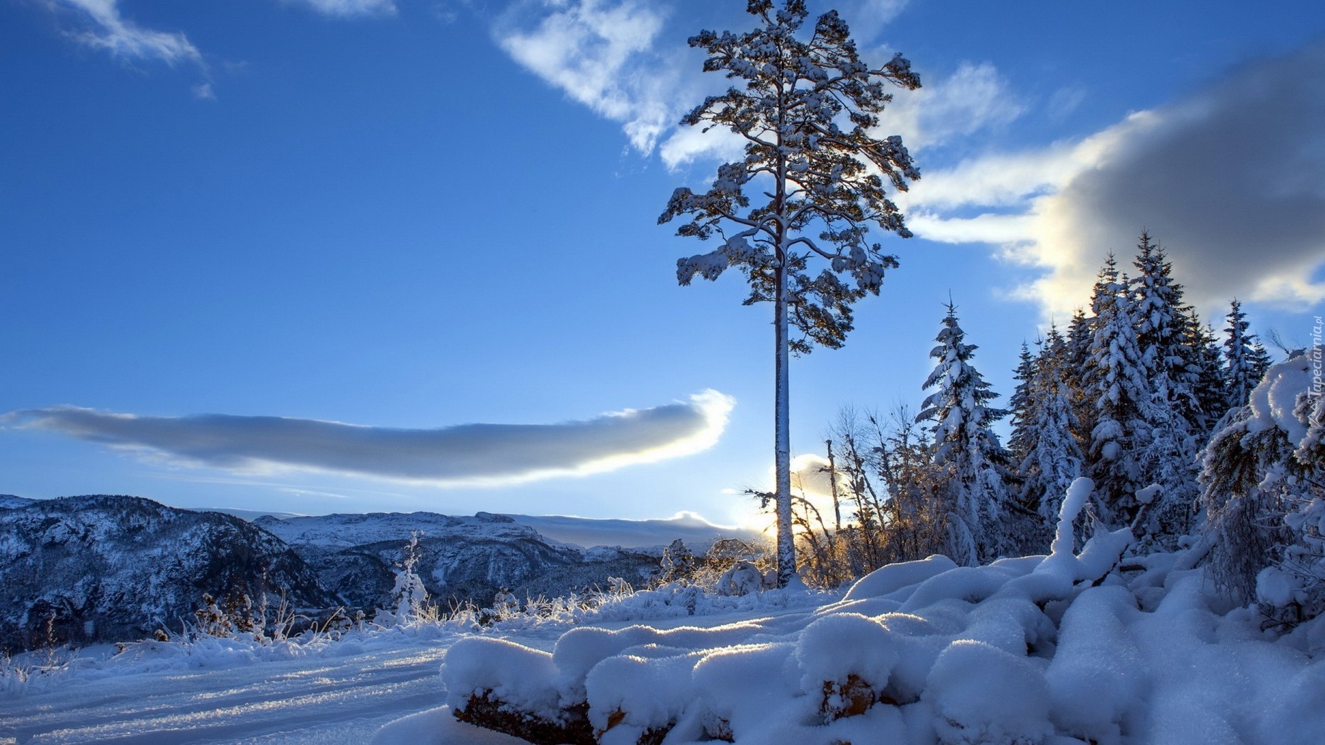 Edytor tapety: Zima, Śnieg, Drzewa, Góry