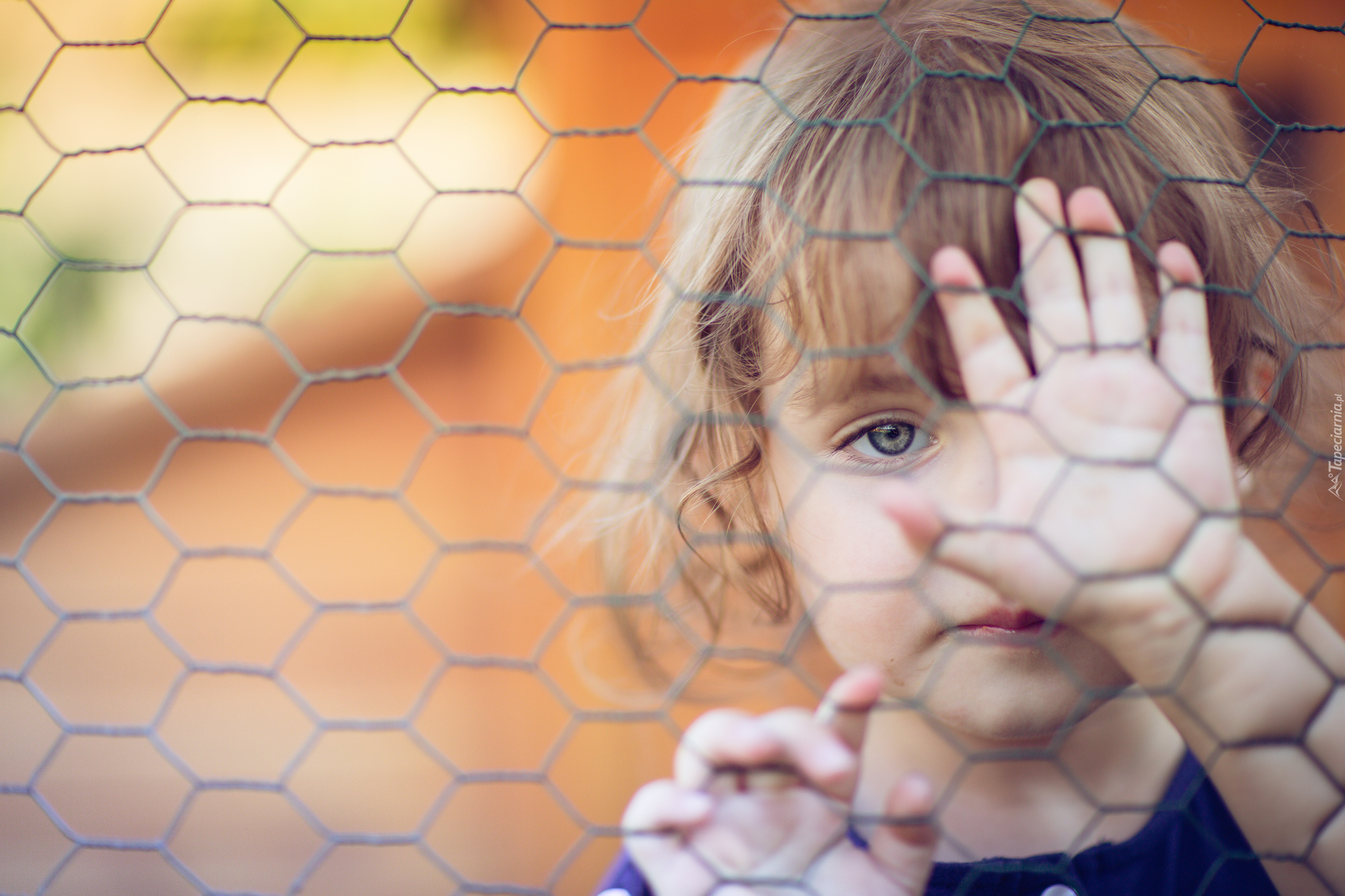Edytor tapety: Smutna, Dziewczynka, Płot, Rozmycie