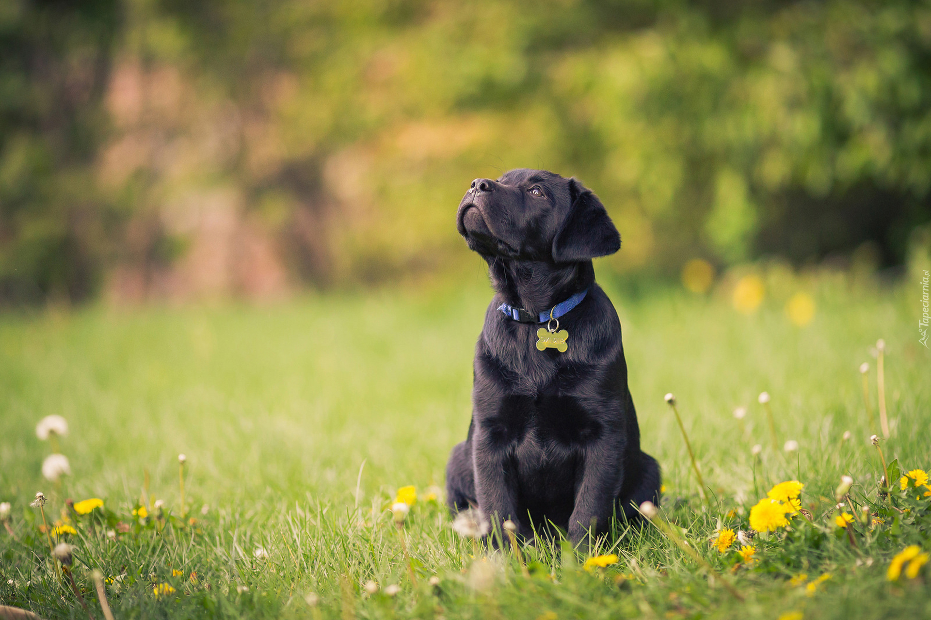 Edytor tapety: Słodki, Szczeniaczek, Labrador retriever, Polana, Kwiaty, Las