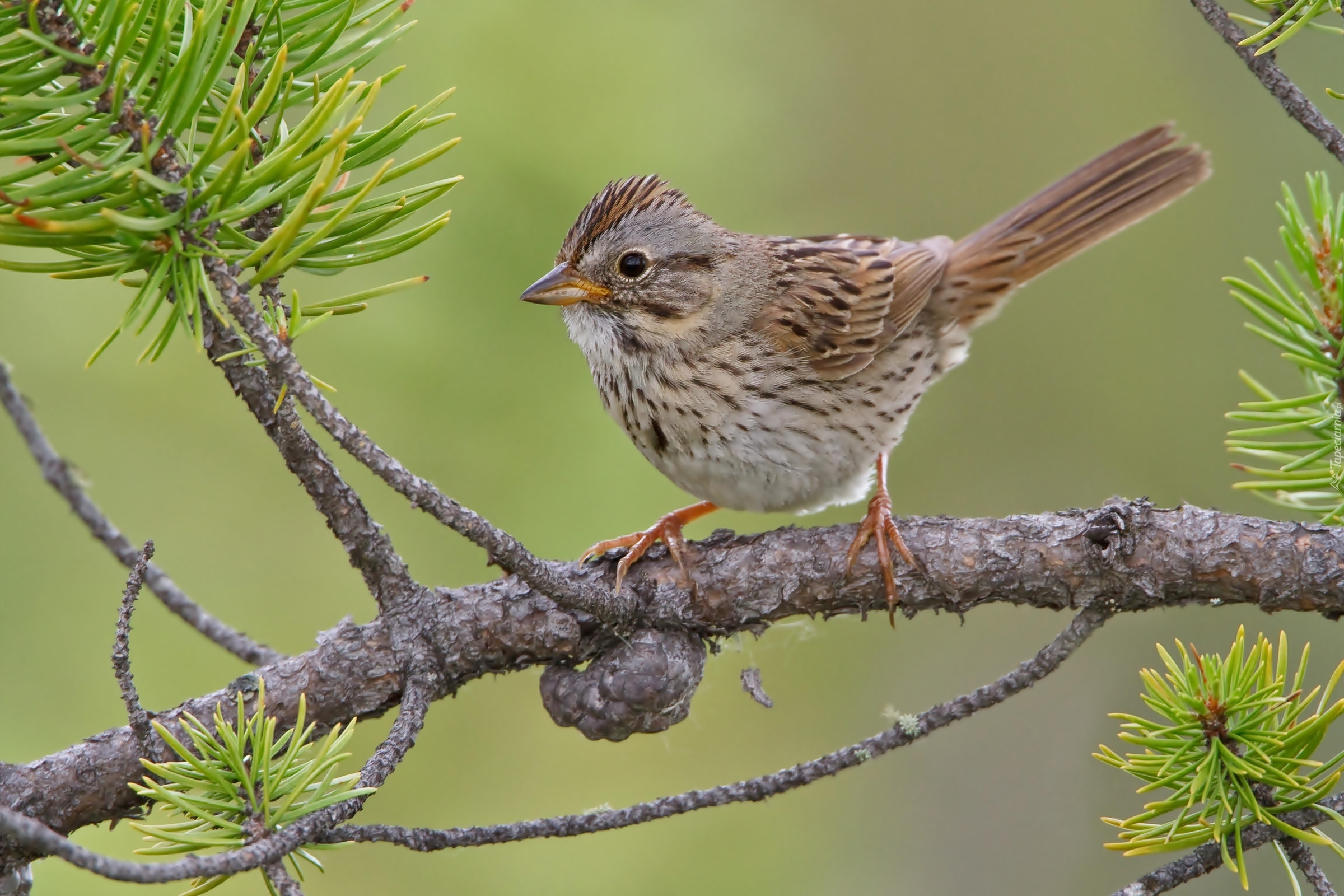 Edytor tapety: Pasówka, Płowa, Ptak, Gałąź, Igły