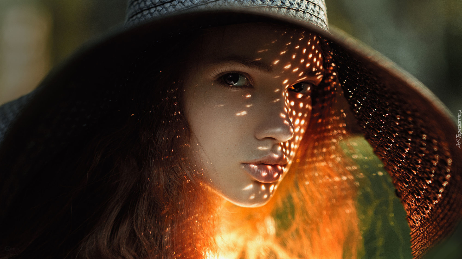 Edytor tapety: Dziewczyna, Twarz, Kapelusz