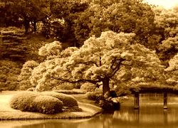 Edytor tapety: Park, Staw, Rośliny, Drzewa, Mostek