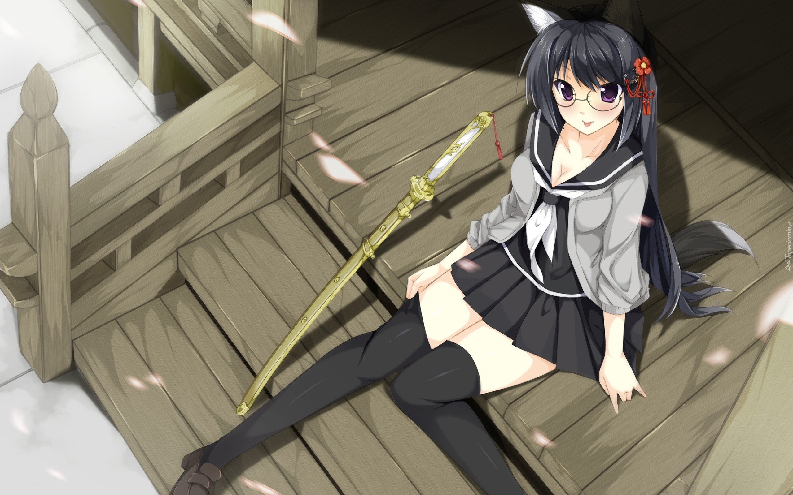 Edytor tapety: Dziewczyna, Miecz, Katana, Schody, Manga, Anime