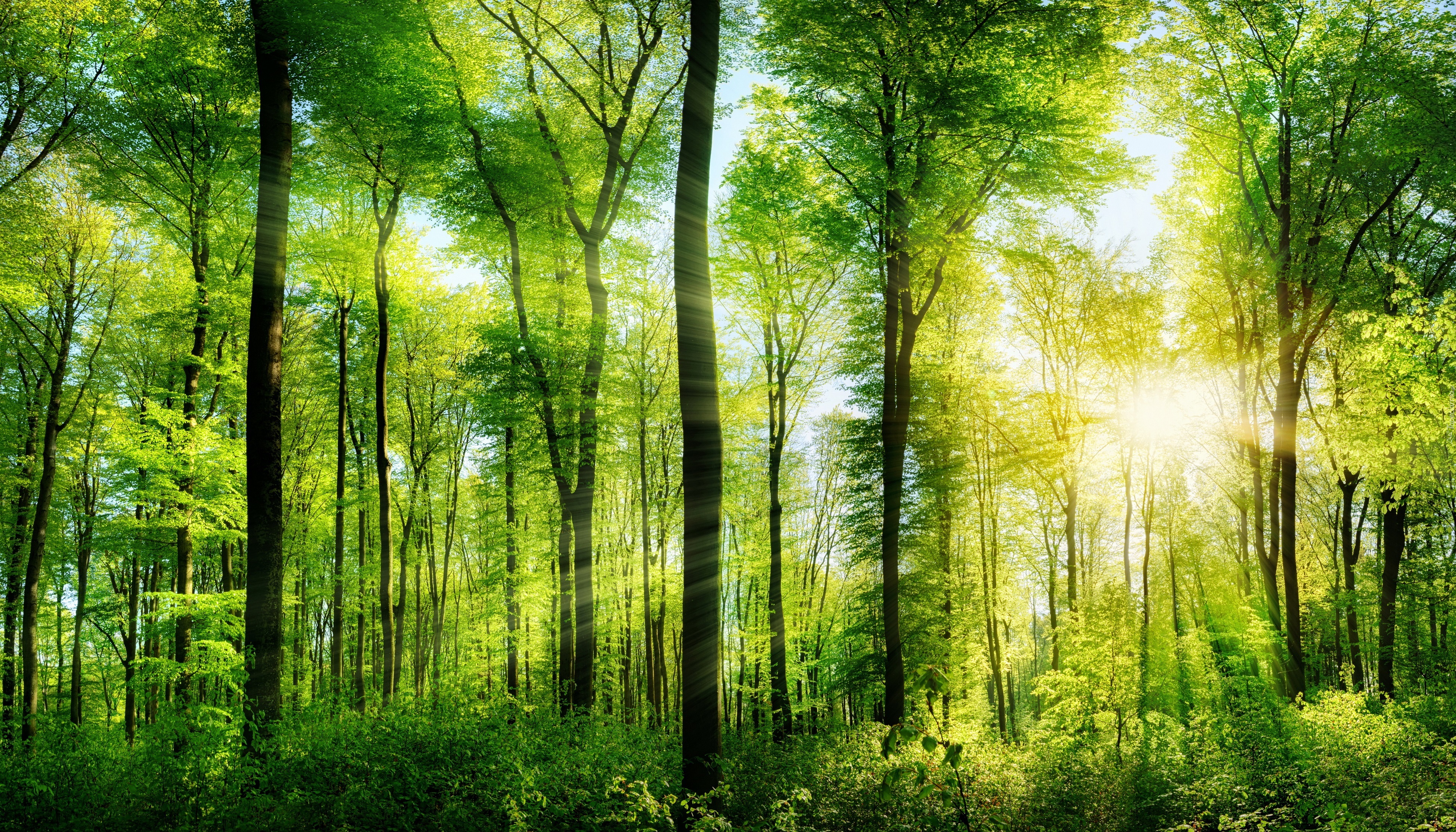 Edytor tapety: Las, Drzewa, Promienie, Słońca