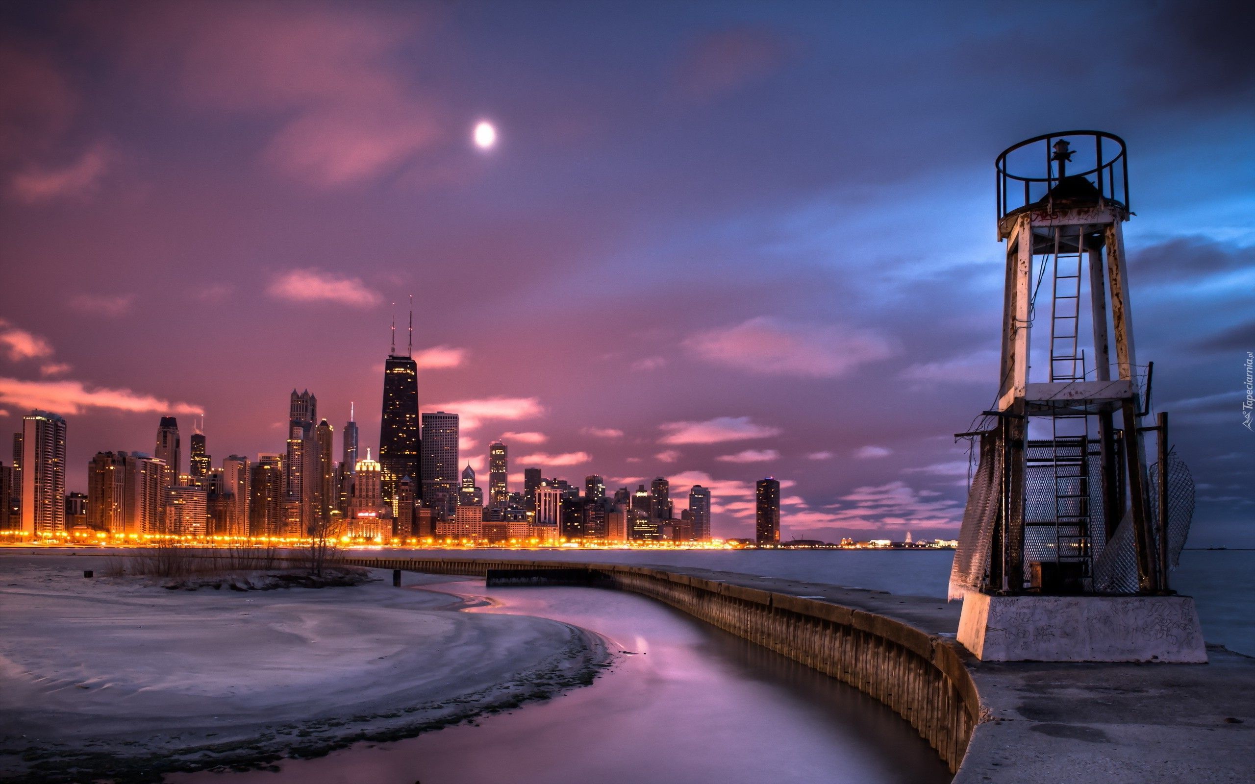 Edytor tapety: Miasto, Noc, Światła, Wieża