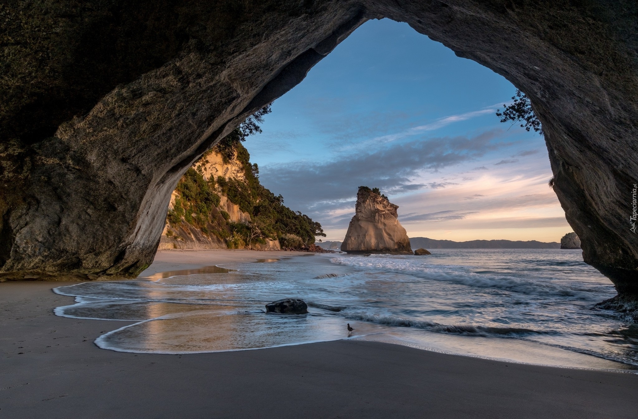 Edytor tapety: Nowa Zelandia, Półwysep Coromandel, Region Waikato, Zatoka Cathedral Cove, Rezerwat, Jaskinia, Morze, Skały
