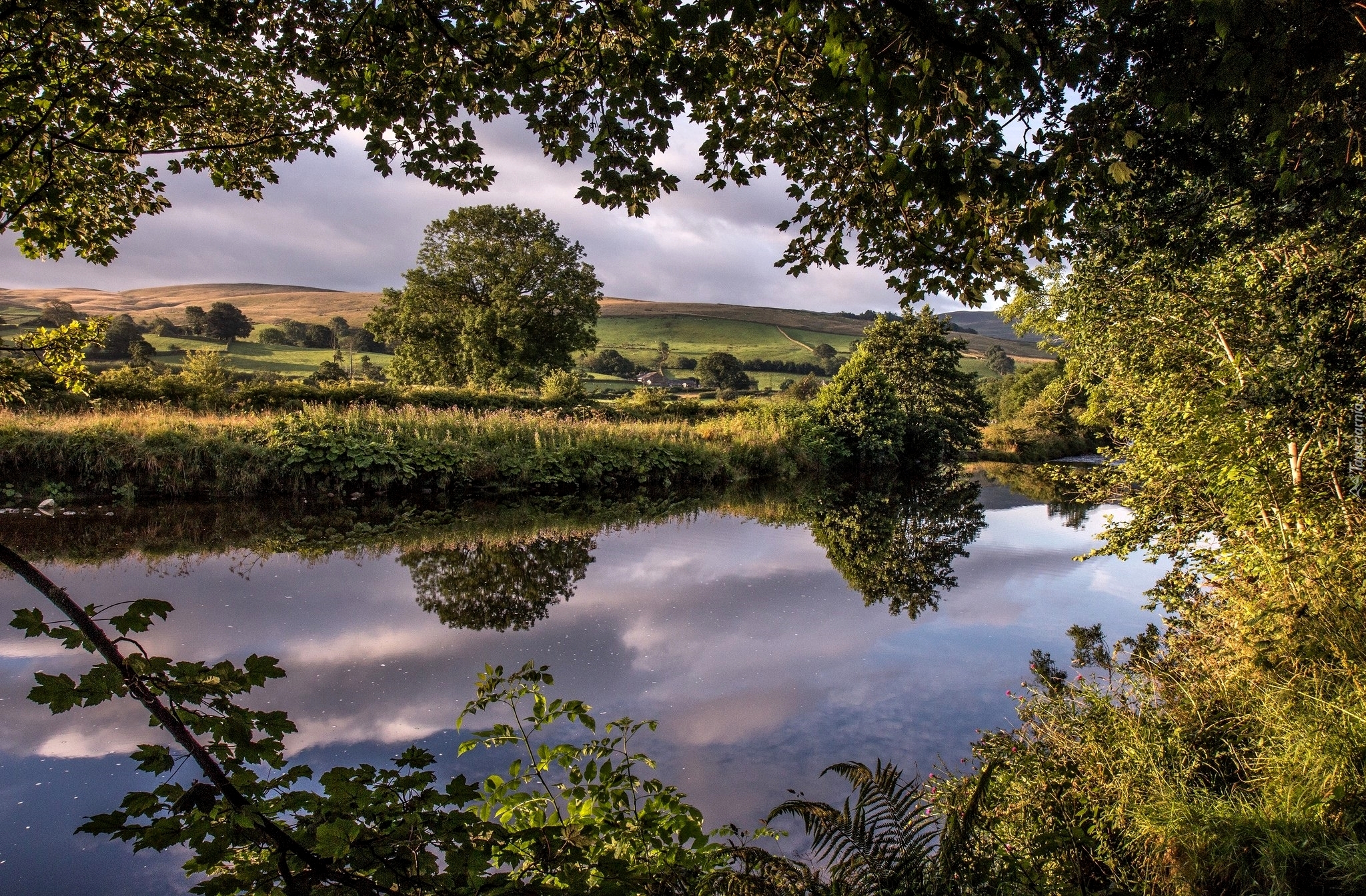 Edytor tapety: Rzeka, Drzewa, Pole, Odbicie