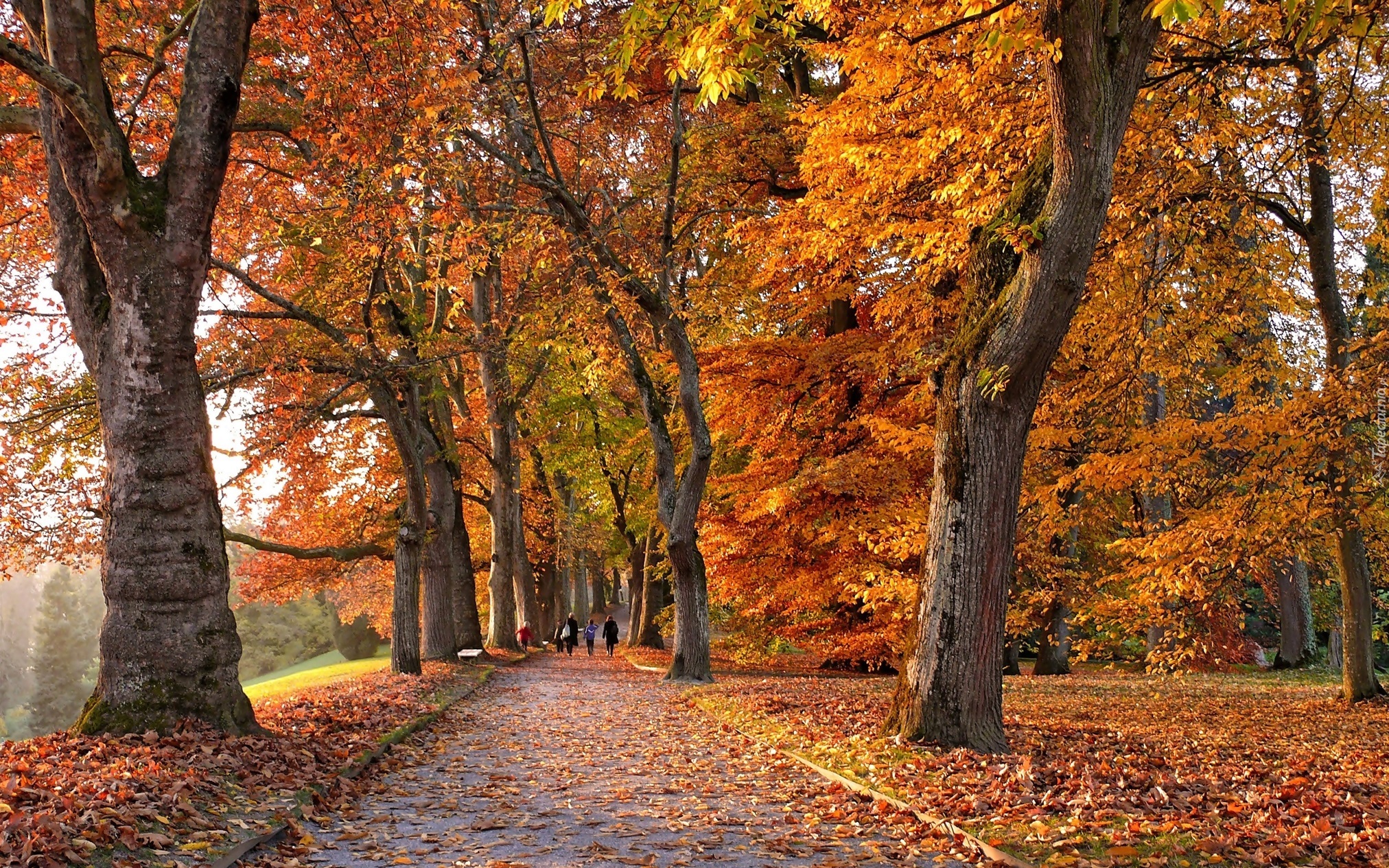Edytor tapety: Jesień, Park, Aleja, Drzewa, Kolorowe, Liście