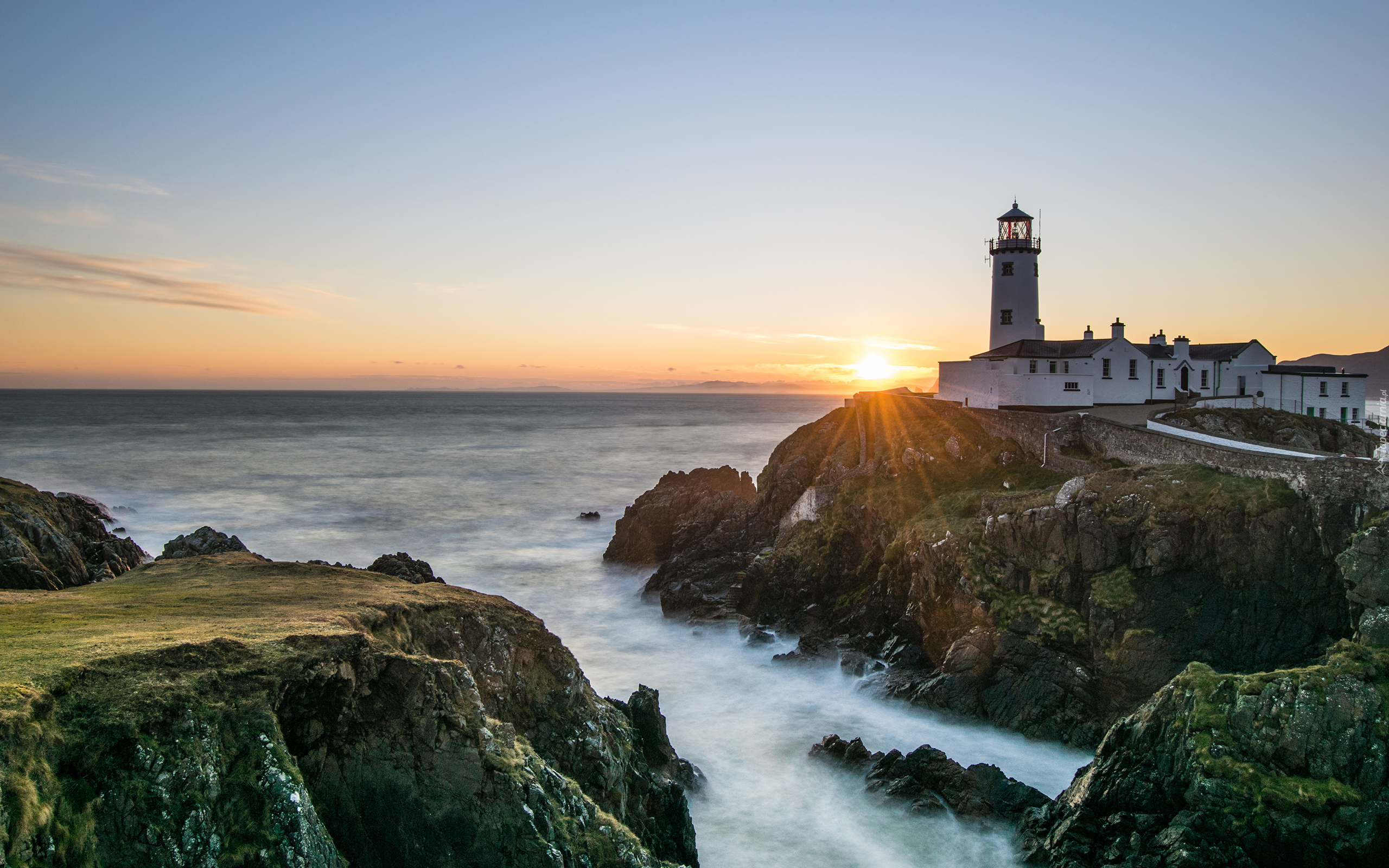 Edytor tapety: Morze, Latarnia morska, Skały, Zachód słońca