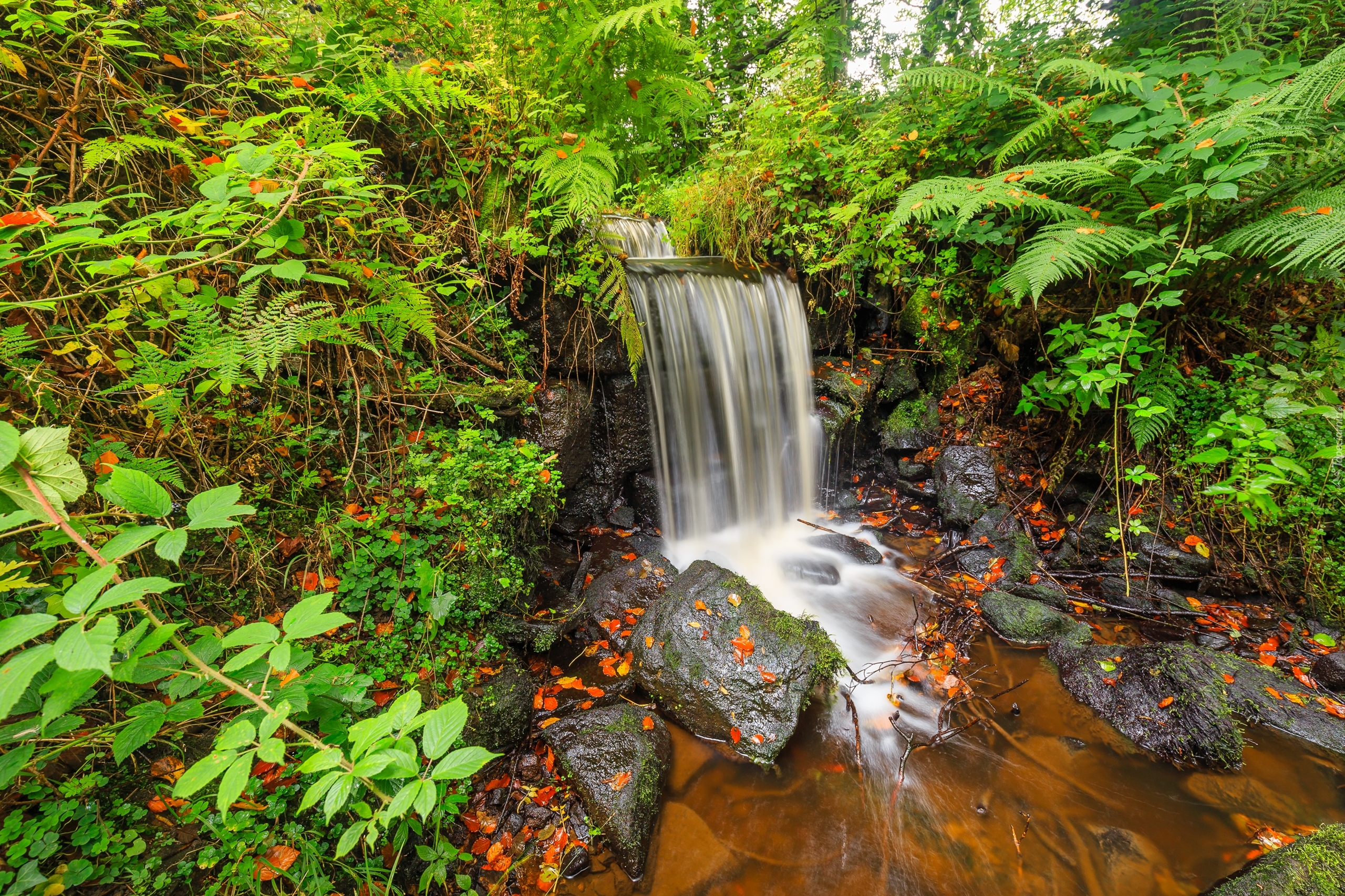 Edytor tapety: Wodospad, Jeziorko, Kamienie