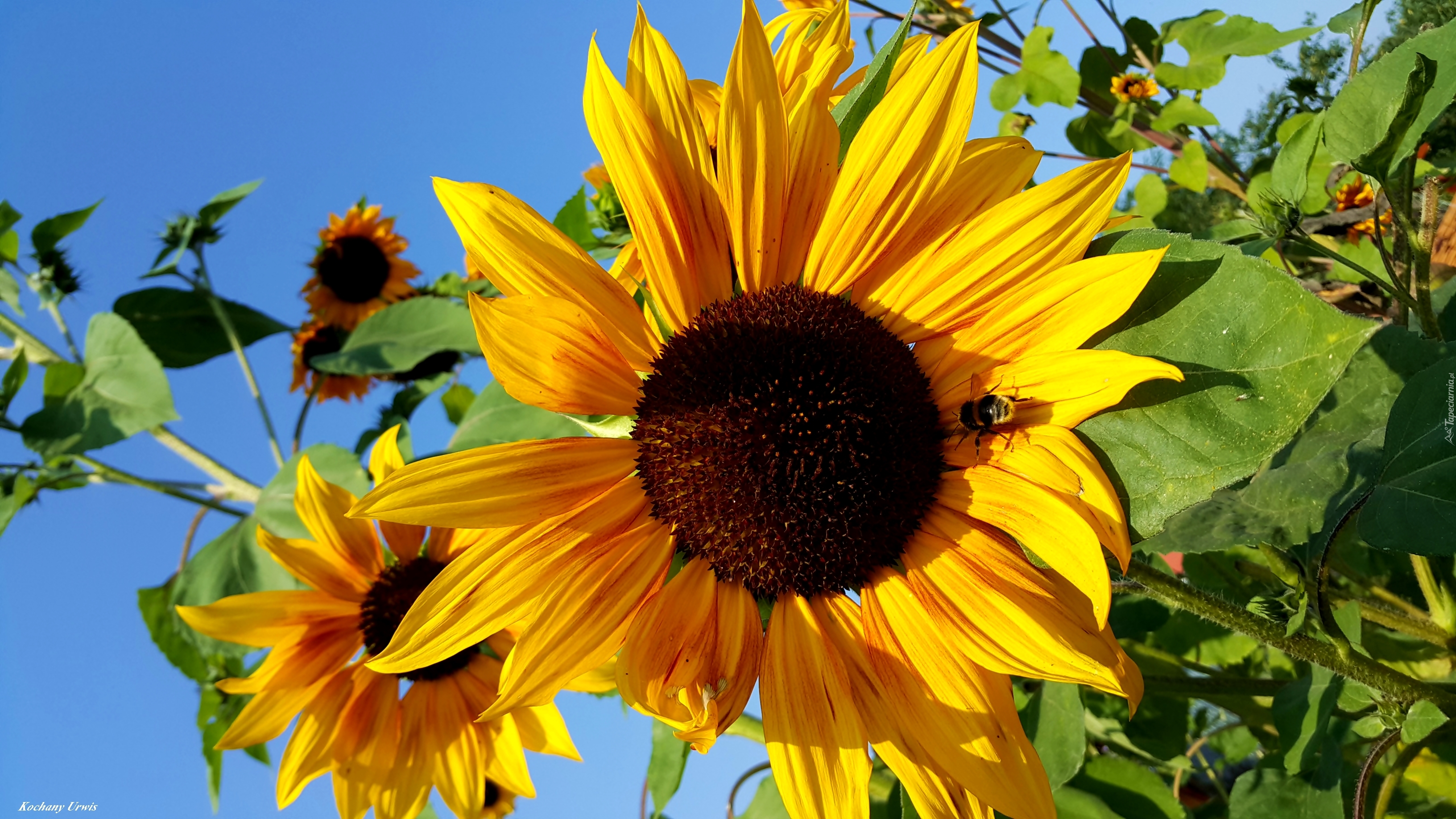Edytor tapety: Słoneczniki, Ozdobne, Pszczoła